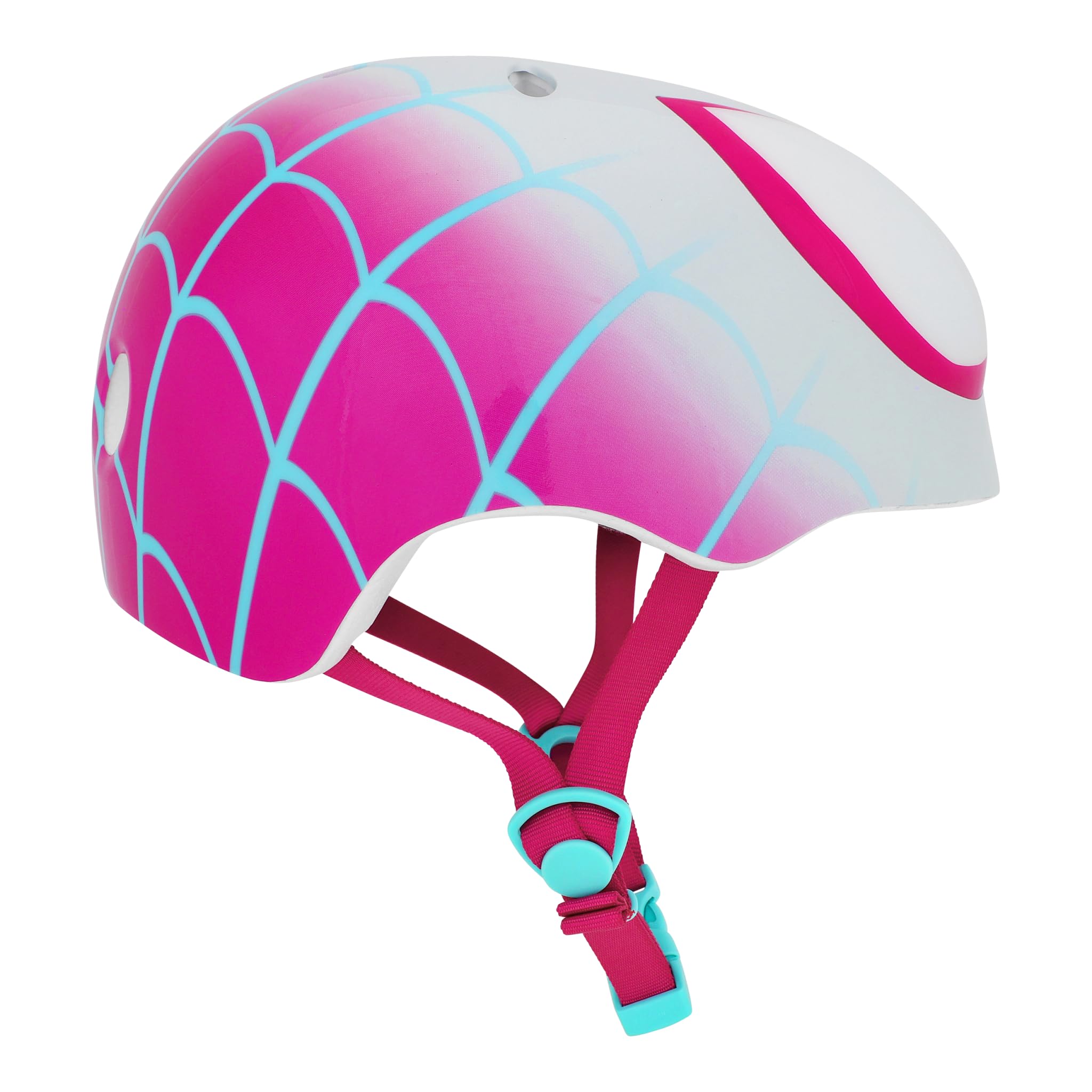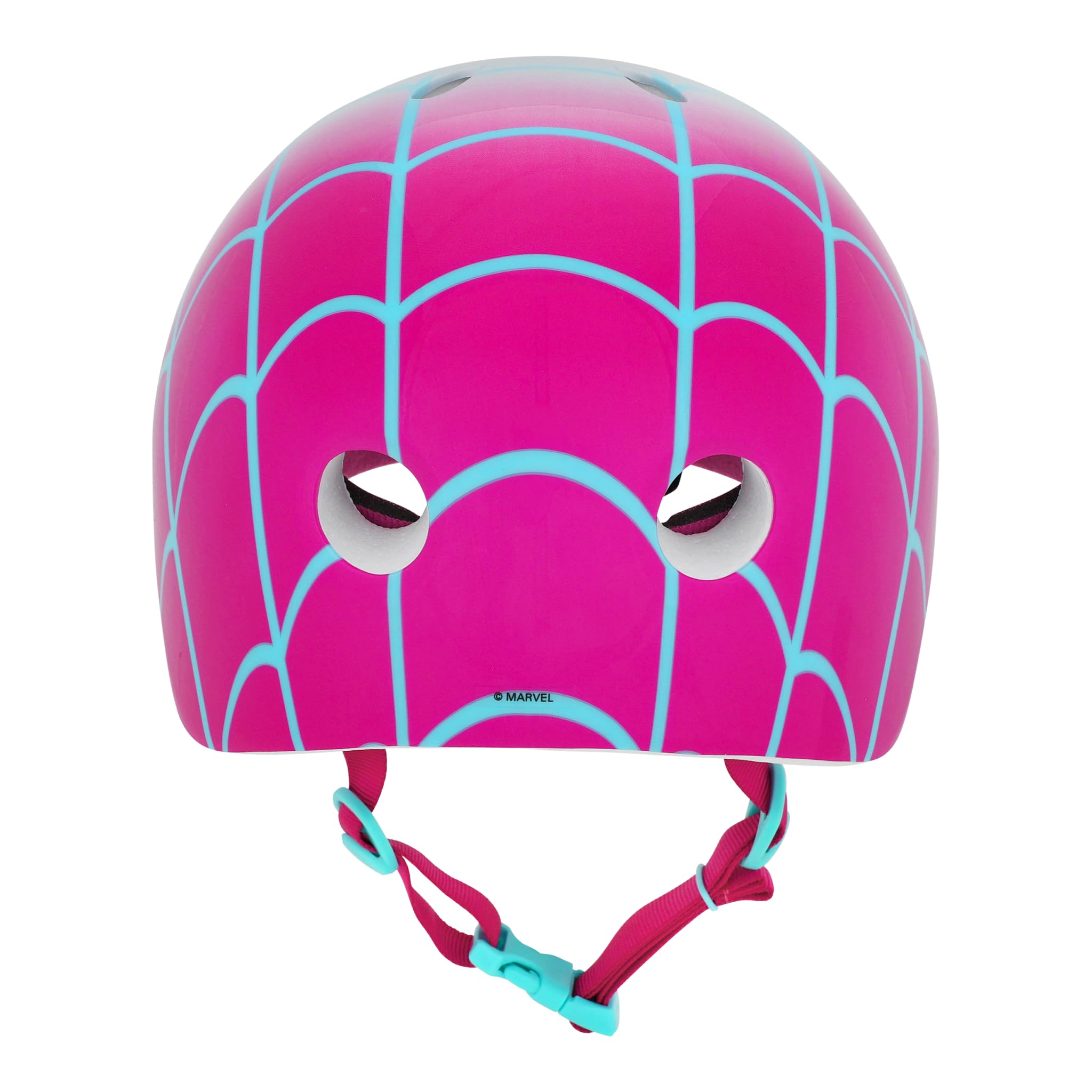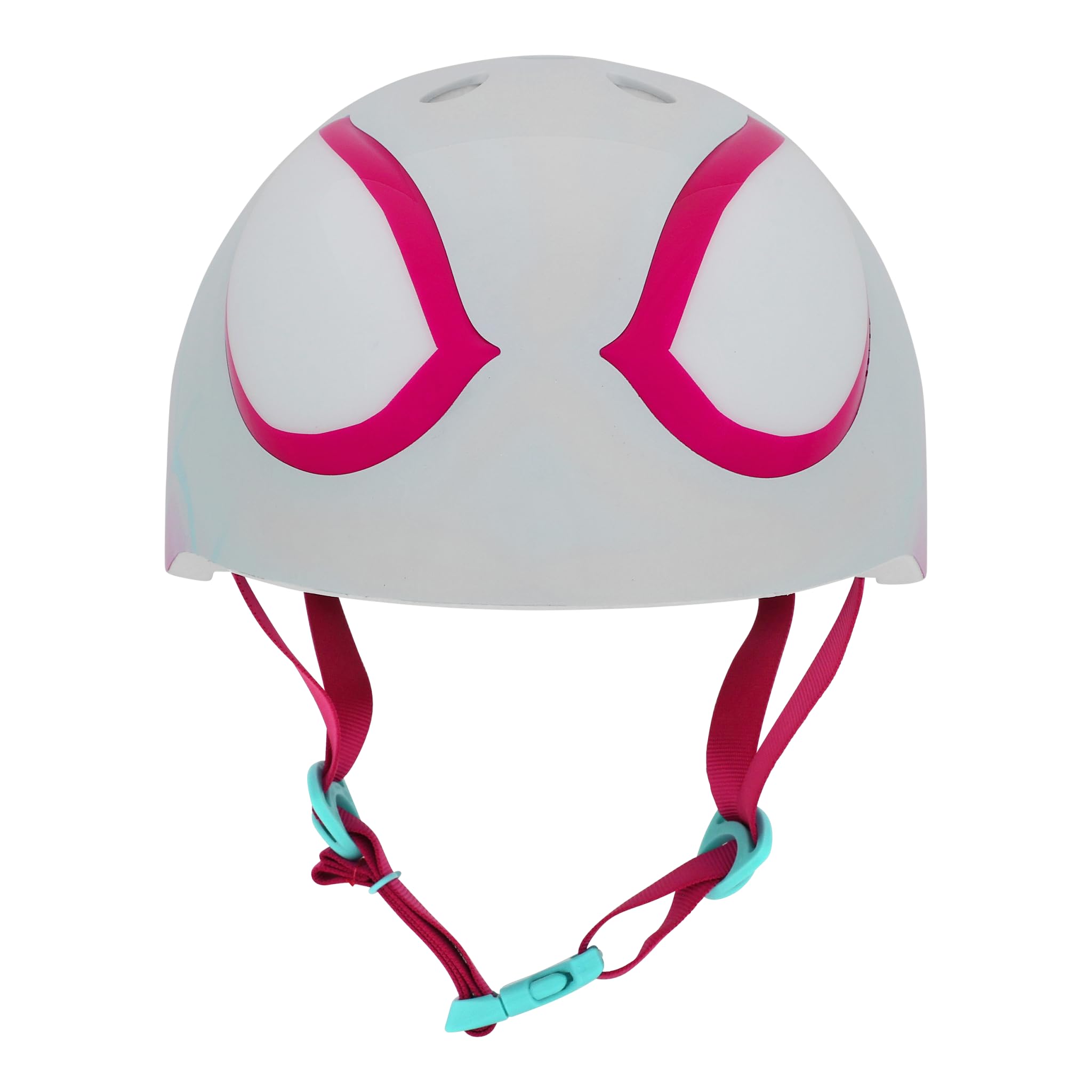 Swing into action with this Marvel Ghost Spider multi-sport helmet for kids. This kids Ghost Spider helmet by Bell features a striking graphic that helps your kid to become the character. This helmet will give them confidence in spectacular style while they are riding their bike, scooter, or skateboard. IMPORTANT: Always take a head measurement. Head sizes and shapes vary, even within an age range. Using a helmet that does not fit can be dangerous.