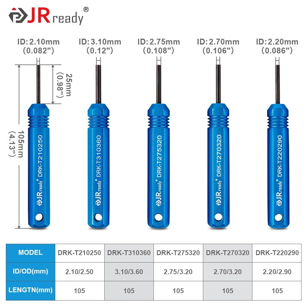 【DRK-T210250 Applicable】 ID: 2.1mm/0.082", OD: 2.5mm/0.098", Applicable MOLEX Standard .062" Series Male&Female Contact; JST ML&EL4.5 Series Pin&Socket Contact.