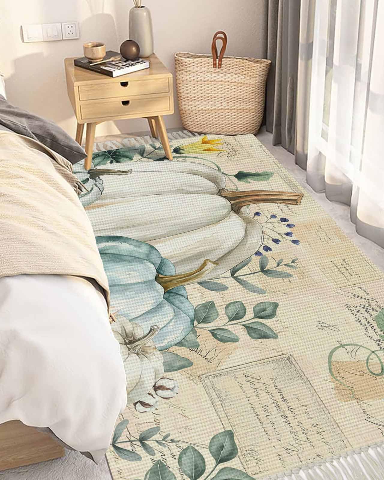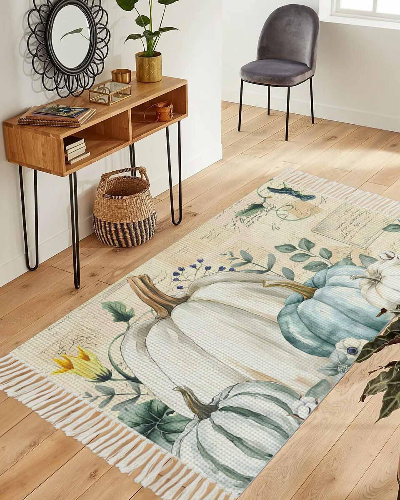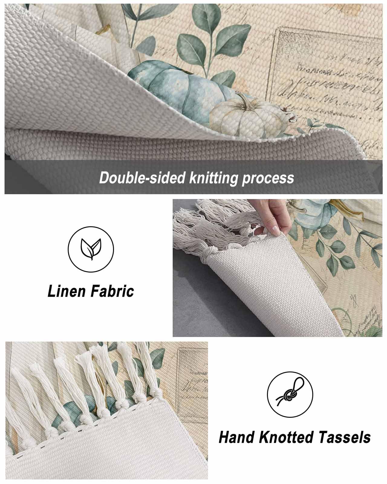 Thanksgiving Living Room Rug with Tassels: Give your room a stylish update with the aesthetic woven rug for kitchen has exquisite knotted tassels on both ends. The tassels area rug adds movement, texture, and a touch of personality, while its rectangular shape blends pretty with boho, farmhouse, or modern decor. The softness tassel alfombra de corredor de area 4x6 transform your room into a warm and inviting you will love coming back to