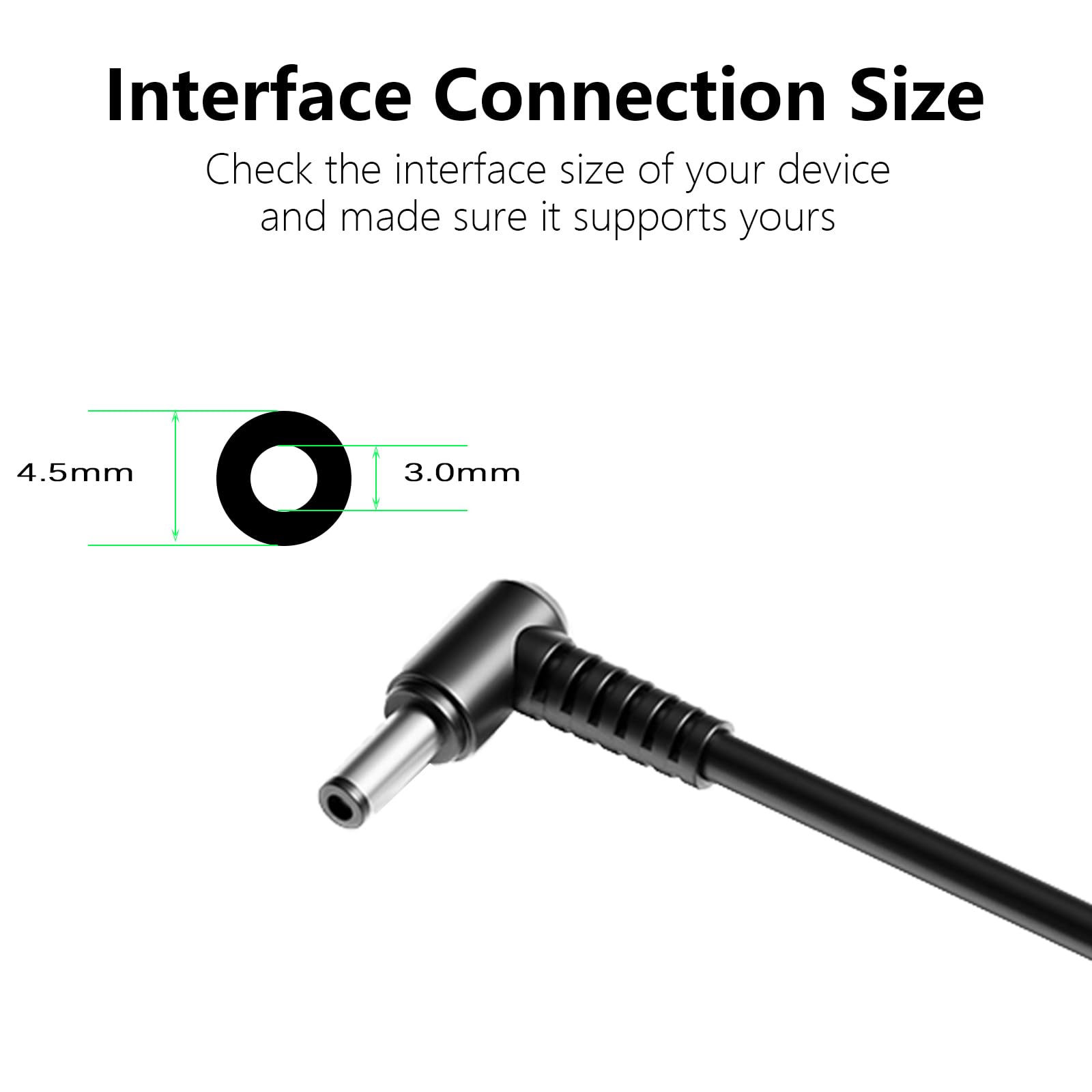 Power Specs:Input:100-240V 50-60Hz,Output:20V 6A 120W; Connector Size:4.5*3.0mm.