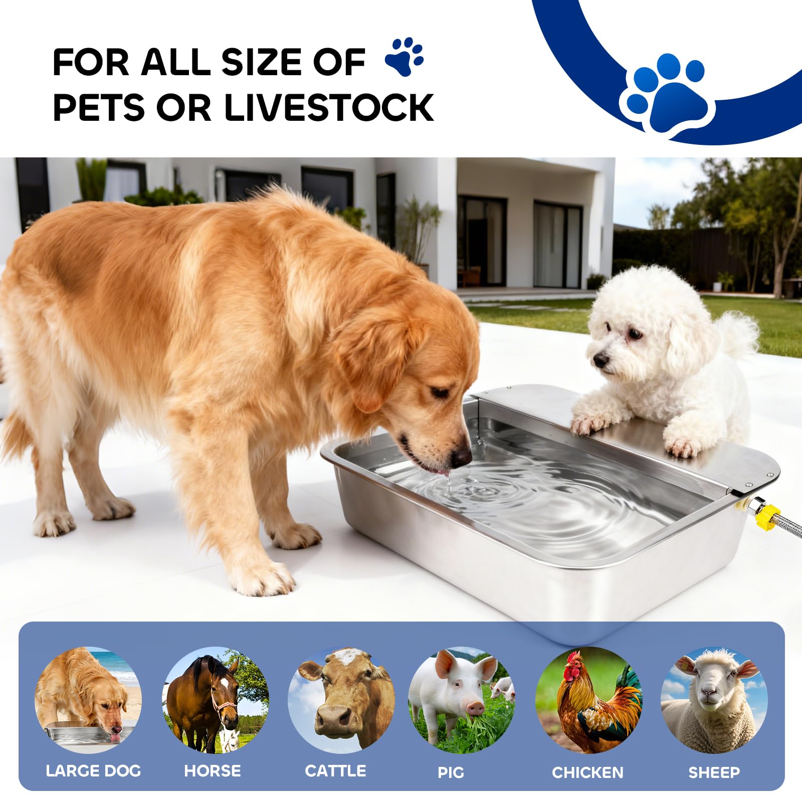 【3-Gallon Large Capacity & Automatic Refill】With a 3-gallon (11.65L) water storage capacity, this automatic dog water bowl dispenser is designed for large dogs, multi-pet households, and various livestock such as horses, cattle, goats, pigs, chickens, etc. The float valve system automatically refills the bowl with fresh water as the pet drinks, ensuring your dog always has access to fresh water. Enjoy peace of mind when you’re away on business or vacation—no more worries about your pet running out of water.