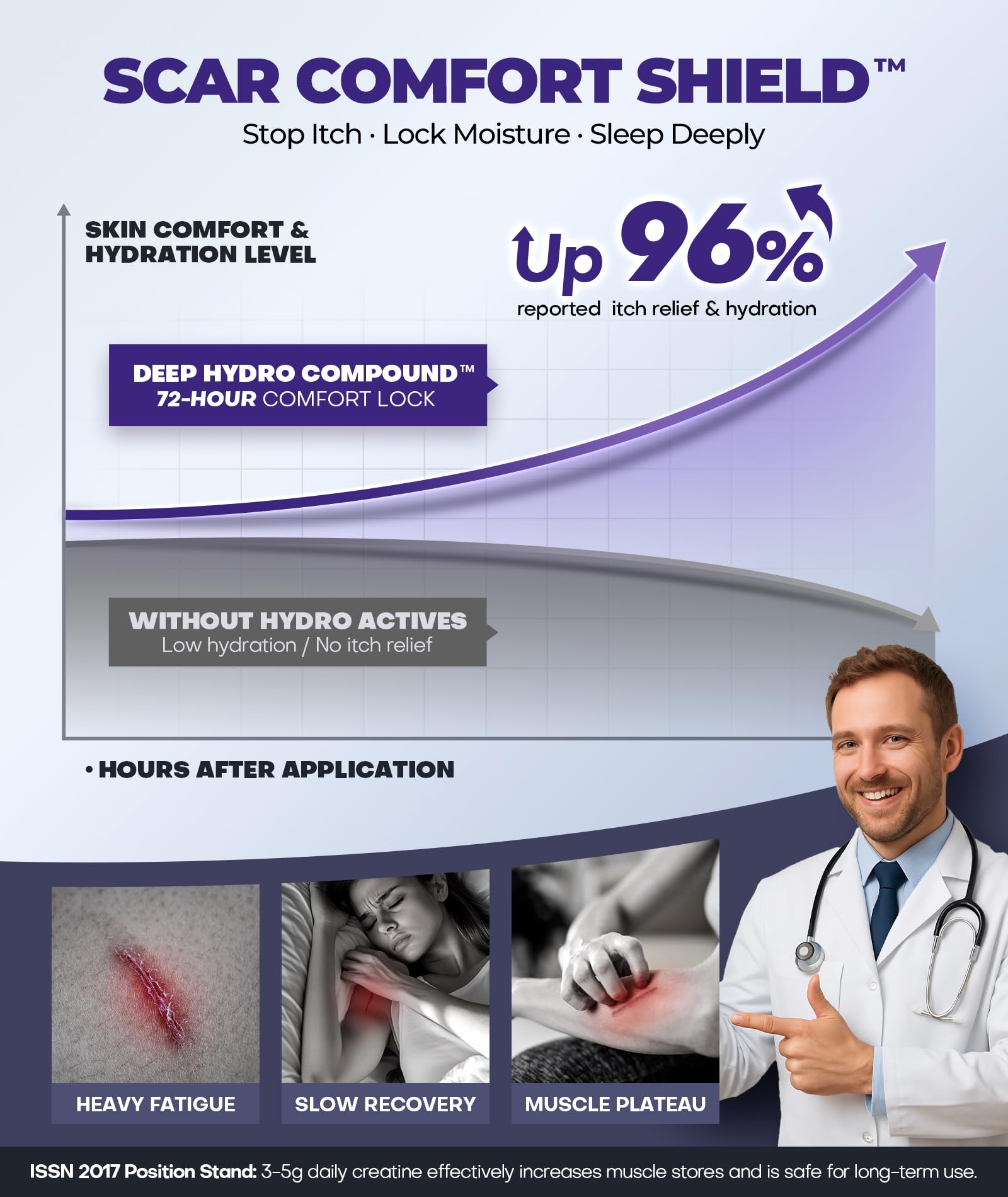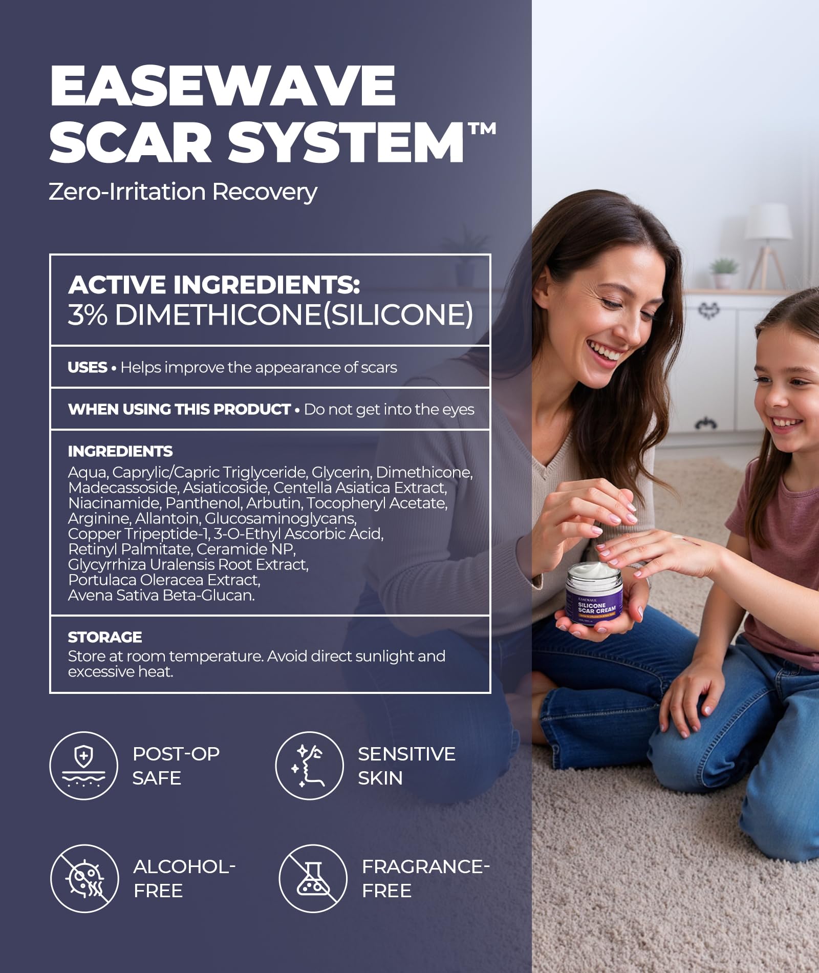 NO MORE MIDNIGHT SCRATCHING - COMFORT THAT LASTS 72 HOURS! Scar itch isn't 'in your head'-it's a real part of healing. As skin repairs, dryness and tightness pull on regenerating nerves, sparking that unbearable itch that often strikes hardest at night. EASEWAVE's 72-Hour Shield works effectively. Medical-grade silicone seals in hydration, while squalane, ceramide NP, and panthenol soothe deep within, easing tension and calming irritation. 96% of users said they use scar cream for surgical scars and finally slept peacefully without scratching. Skin recovery feels better when comfort lasts.
