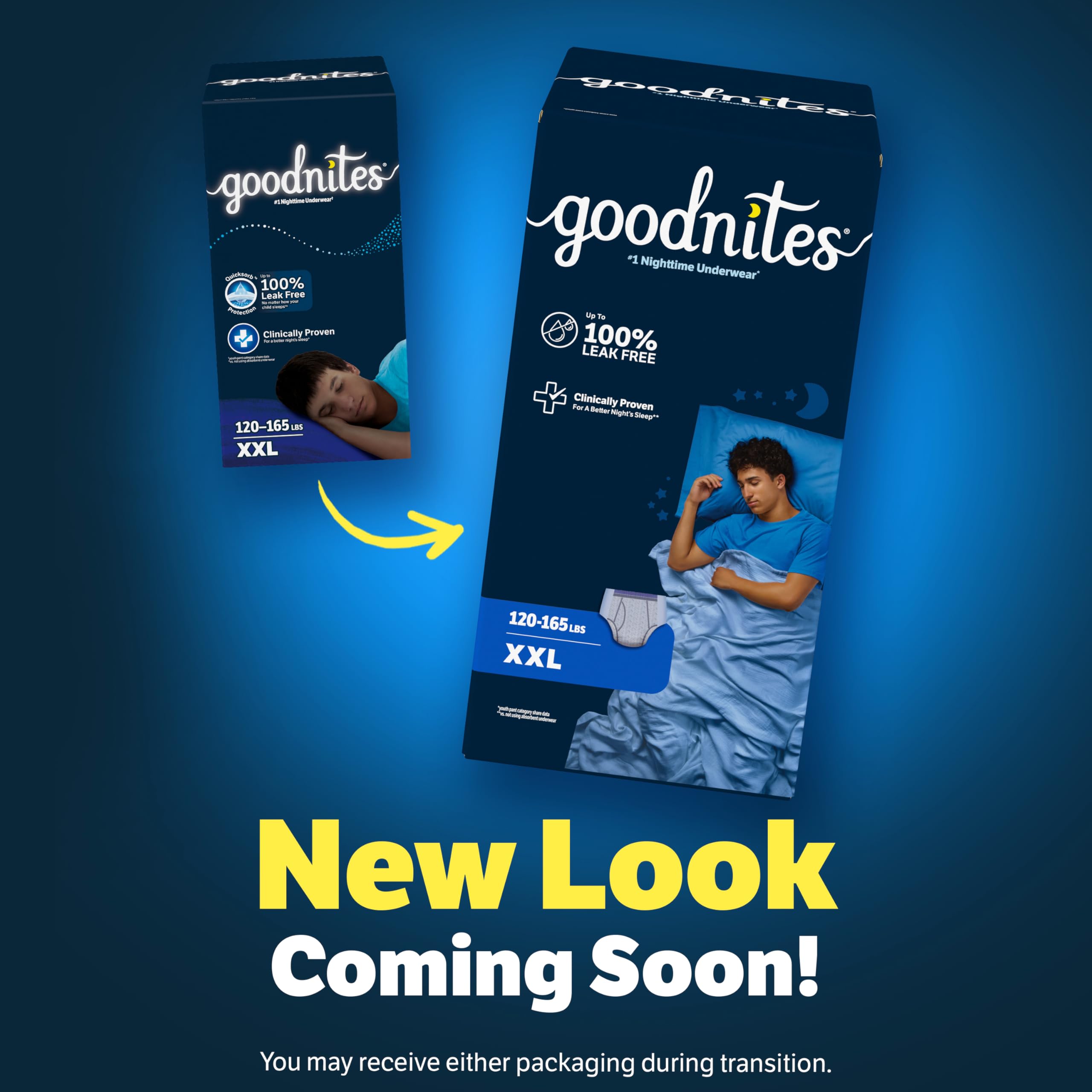 Goodnites nighttime underwear are clinically proven for a better night’s sleep** (**vs. not using absorbent underwear)