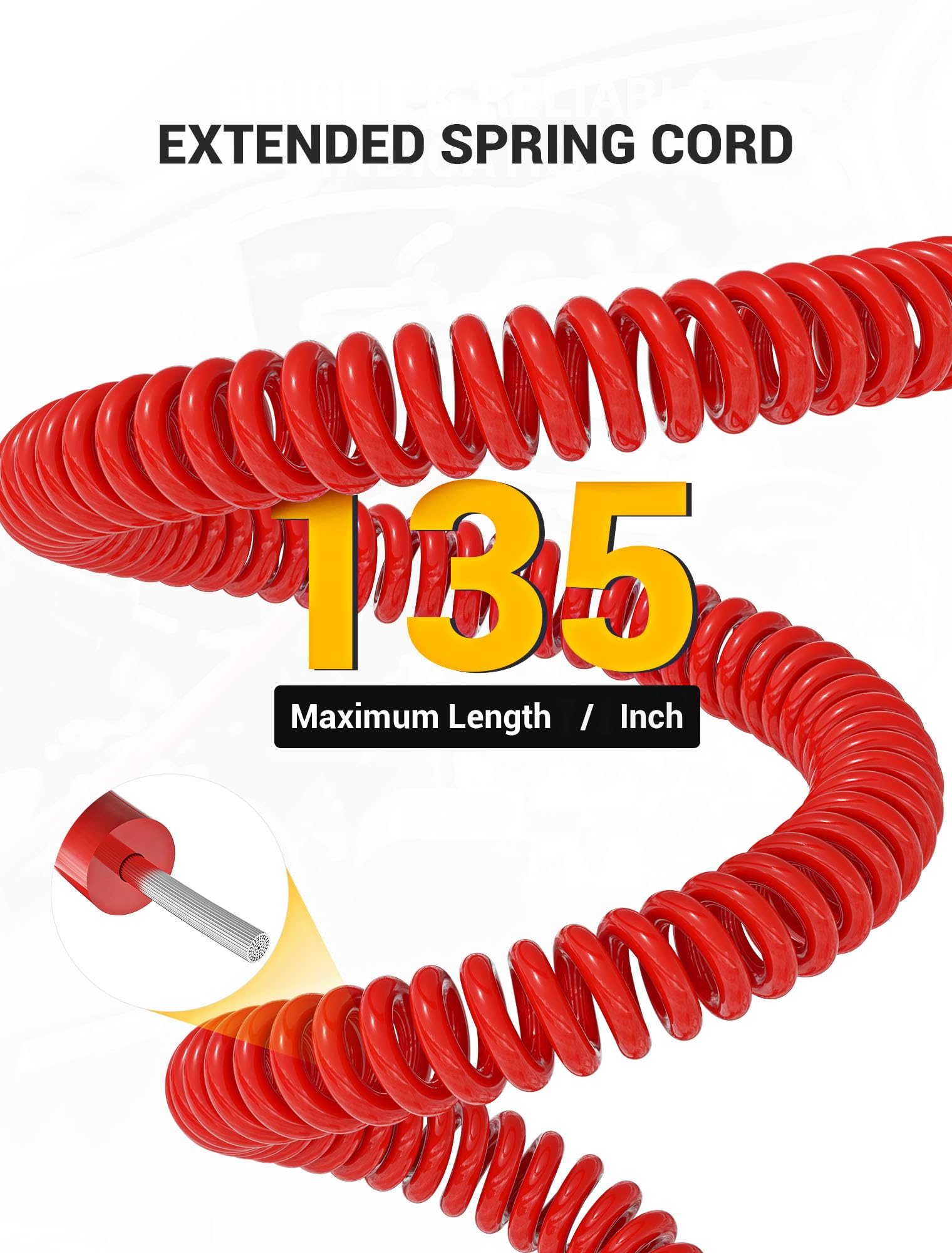 【135 Inch PU Spring Cord】 : Portable 135 inch long enough PU spring wire cord, tail equipped with anti-kinking spring; And large size alligator clip for easy and one hand operation.