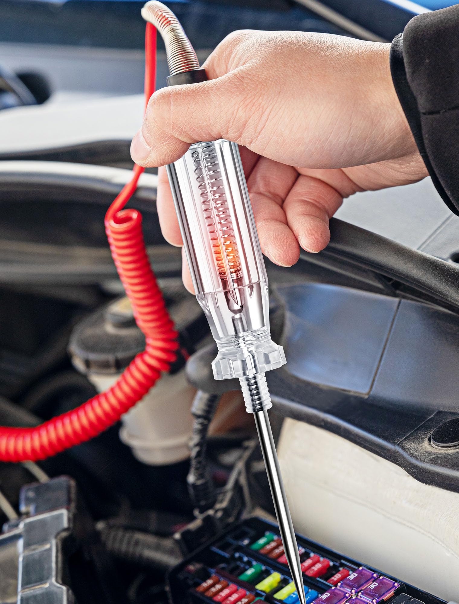 【Wide Application】 : DIY automotive circuit tester/circuit test light with 6-24V DC voltage testing range, ideal for checking various vehicles electrical circuits, quickly check automotive headlights, taillights, turn signal circuits, faulty sockets, fuse connections, also for testing other 6-24v DC wirings and circuits. Making it an essential tool in electrical troubleshooting.
