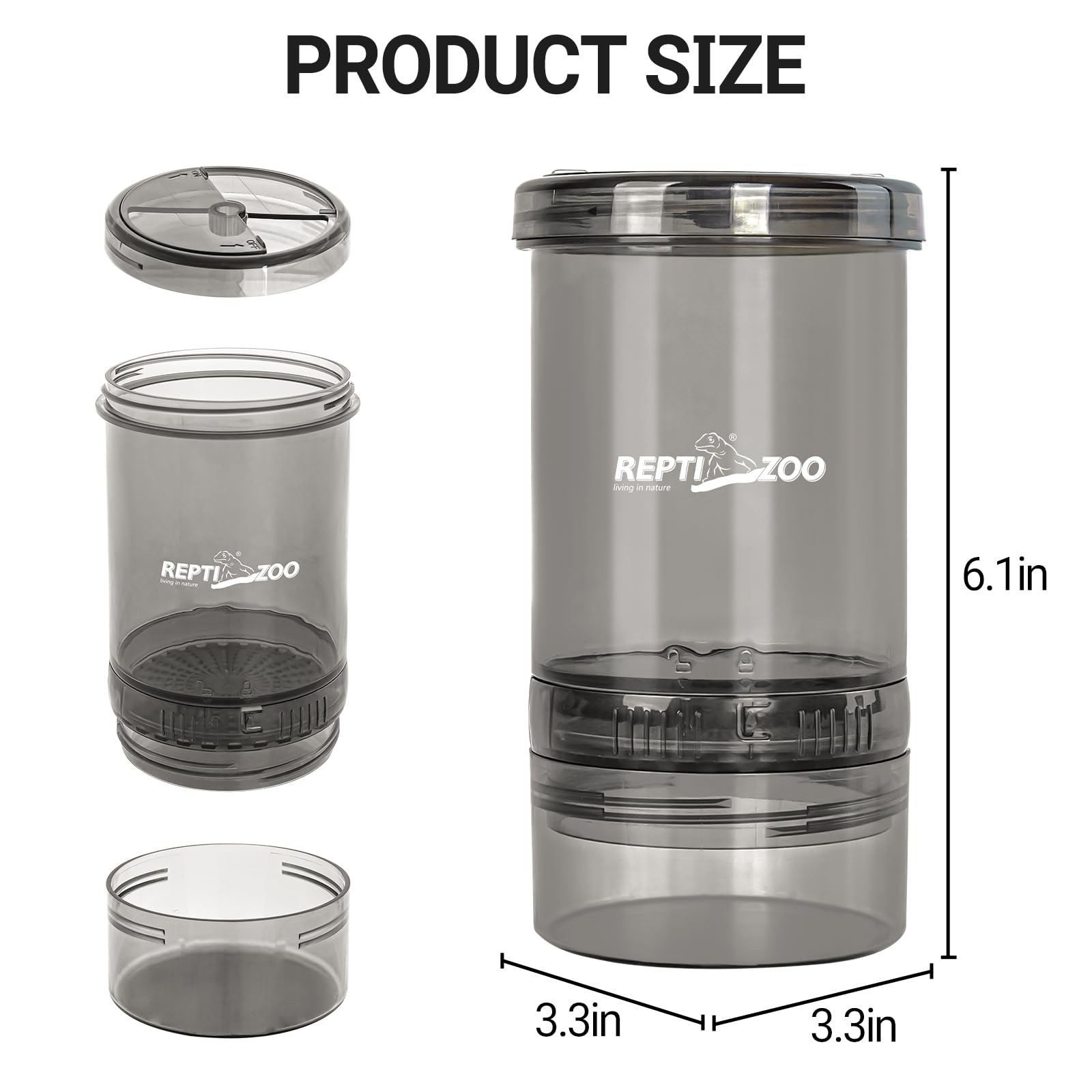 【Reptile Cricket Keeper】: REPTI ZOO Reptile Cricket Powder Mixer Kit features crystal-clear visibility and escape-proof 6" height. The twist-lock lid with ventilation holes safely contains cricket while blending calcium powder for reptiles through patented shaking technology;