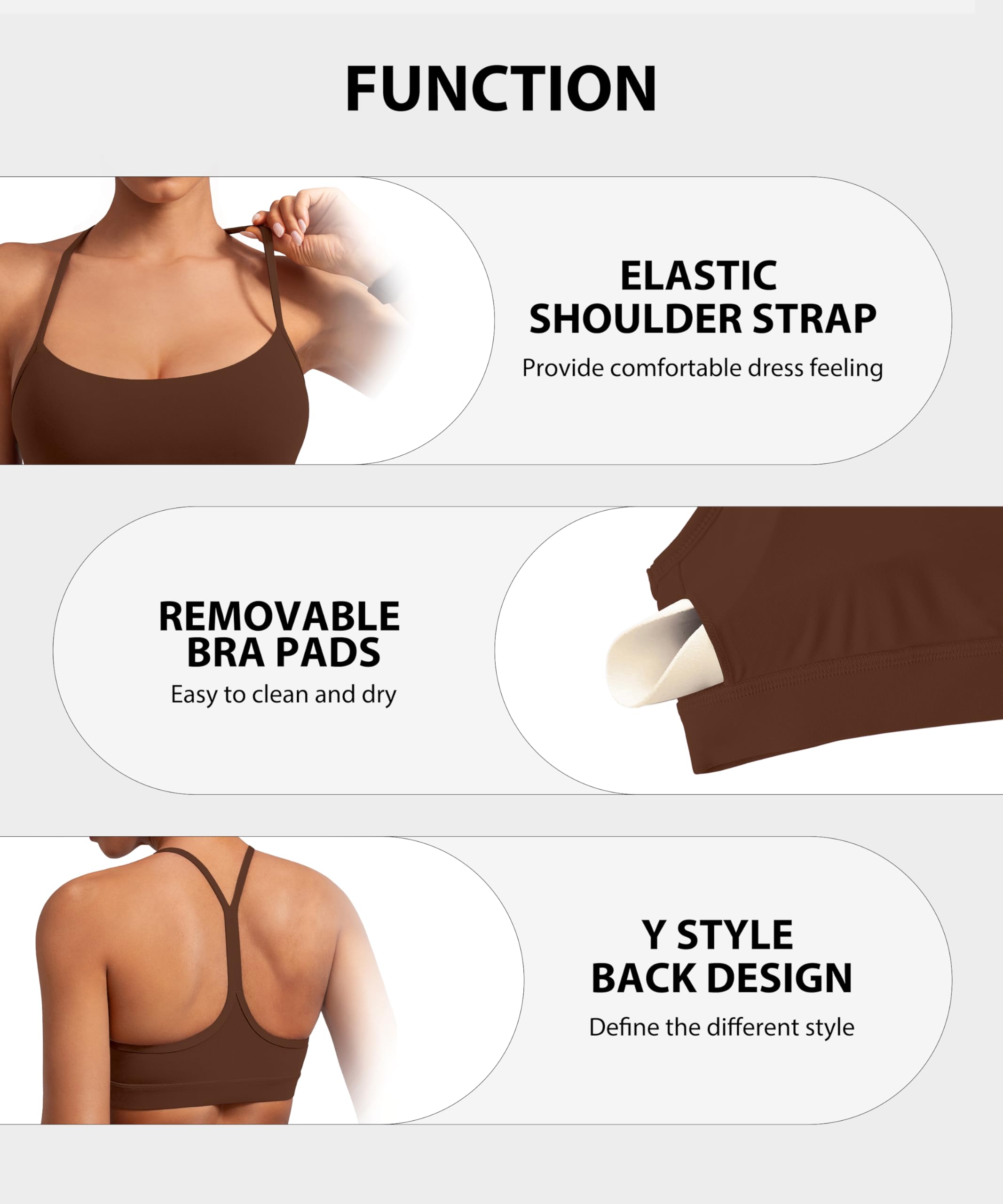 Comfortable Y-Back Design: Enjoy a full range of motion with this sports bra's Y-back strap design. Thin straps form a supportive Y-shape at the back, freeing your shoulders to move without restriction during workouts. The racerback-style Y design also prevents strap slipping or chafing, ensuring lasting comfort during every pose or activity. Plus, the open-back style allows airflow to keep you cool and adds a stylish touch to your workout outfits.