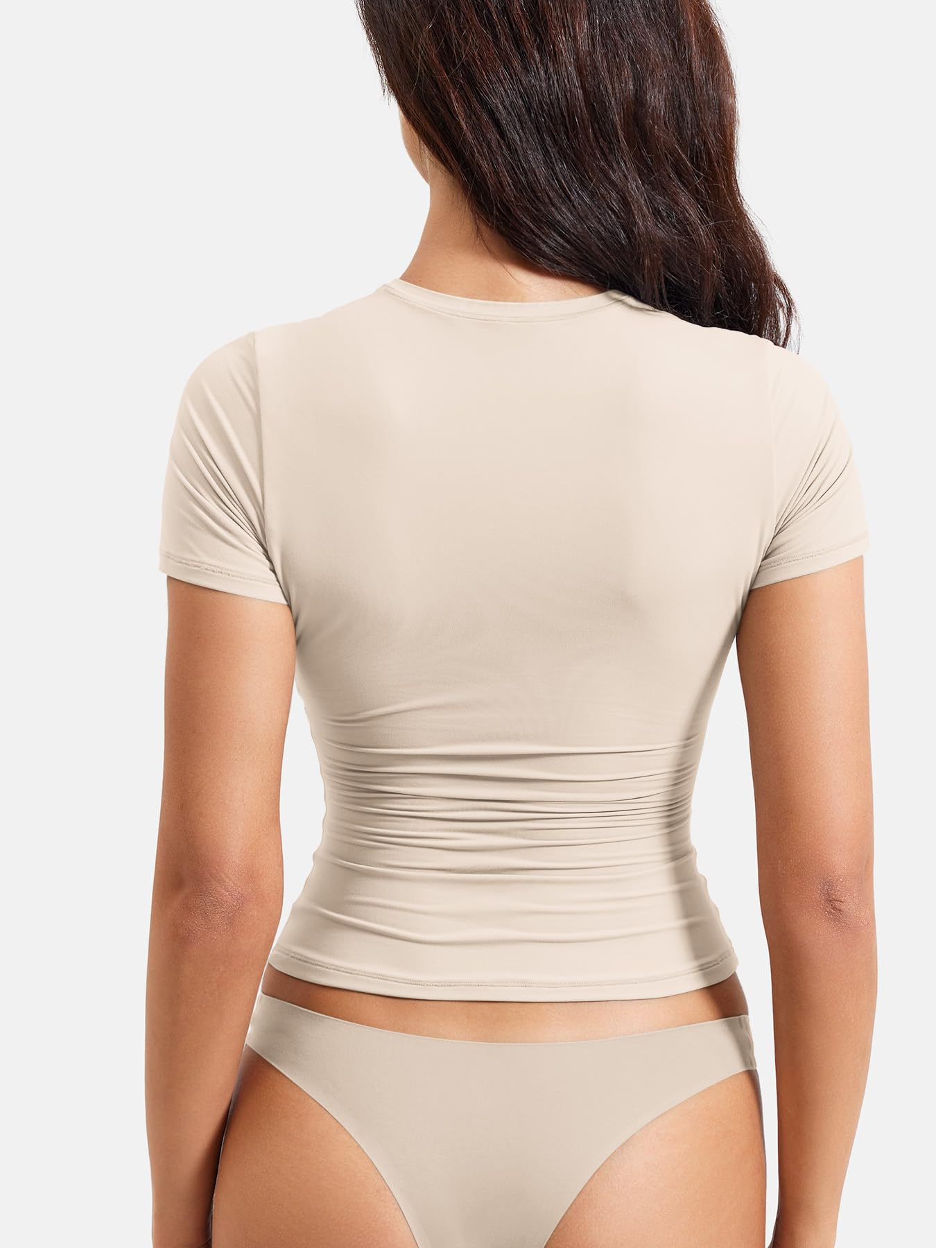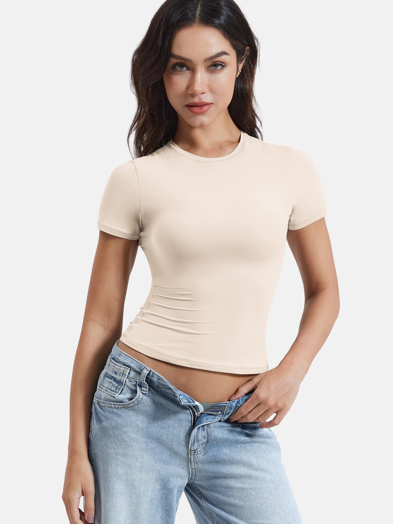 Fahion Basic top - Fitted gym tops with a crew neck fit and buttery soft feel