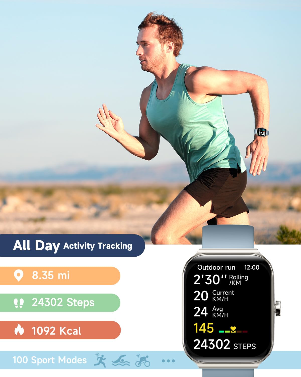 [Activity & FitnessTracker] Track your health and fitness goals with the TOOBUR fitness & activity tracker. The fitness watch can monitor your heart rate, and stress levels in real-time, and alert you if anything is abnormal. With over 100 different sports modes, the activity tracker allows you to easily track your steps, calories burned, distance, speed and with an IP68 waterproof, the watch is perfect for swimming and any activity. Get yours now and start tracking your progress!