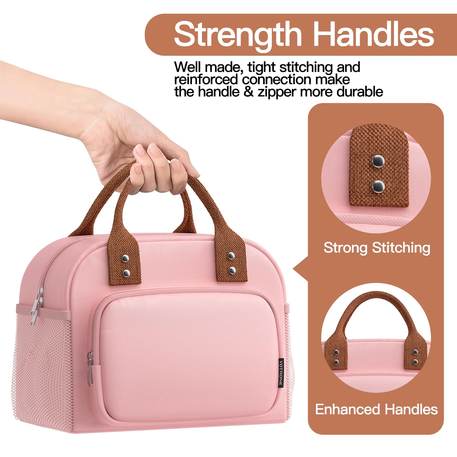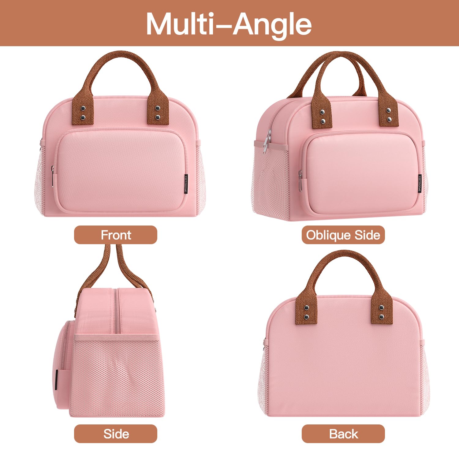 【MULTIFUNCTIONAL LUNCH BAG】: The lunch bag women is designed with a spacious front pocket to hold a smartphone, napkins, keys, cutlery, and more. Additionally, the lunch bag for women has a side mesh pocket for drinks, bottles, or other small items, allowing you to free up your hands. This makes it perfect for use as a lunch cooler bag, a shopping bag, a picnic bag, and a tote bag for women, adults, teachers, men, nurses, and ladies, etc