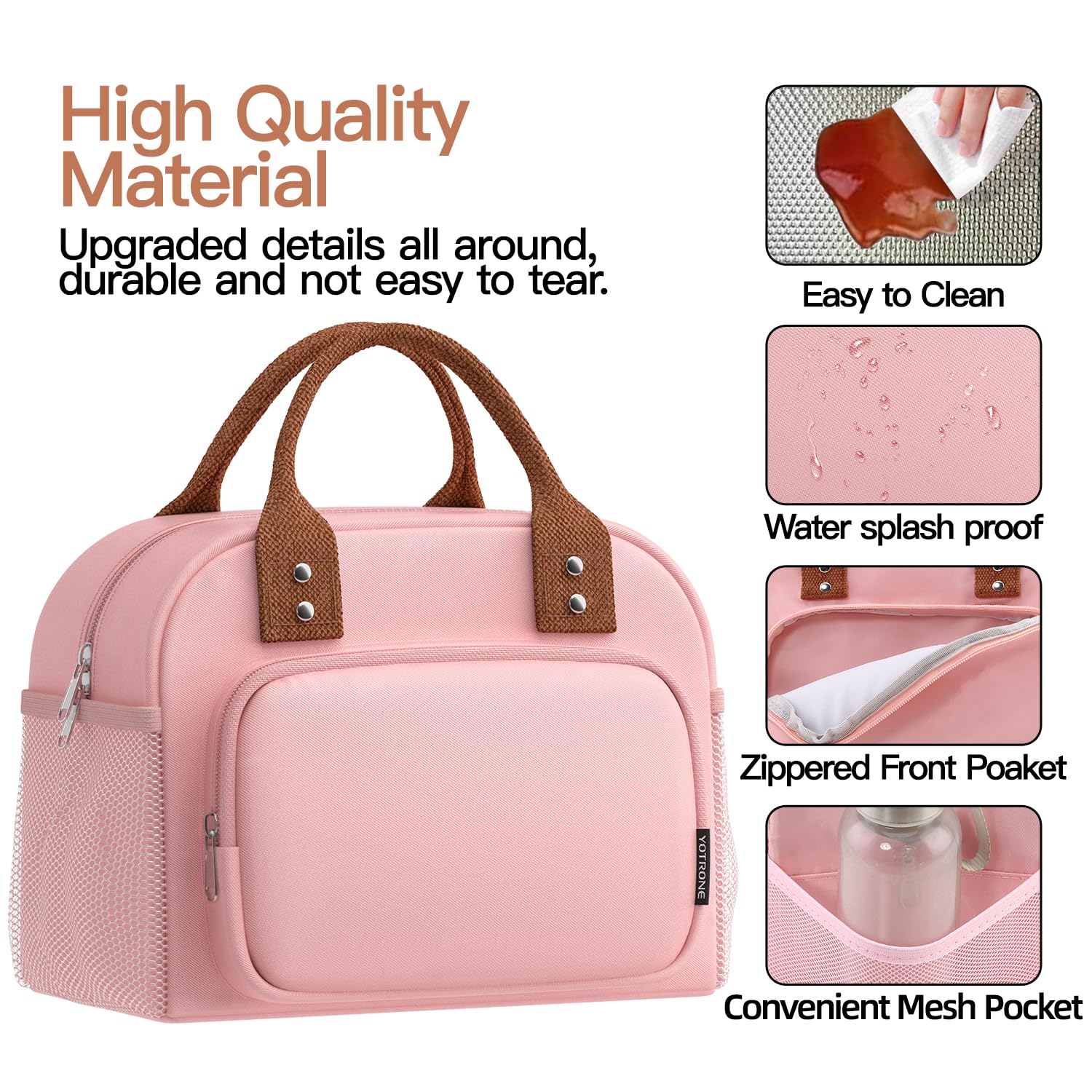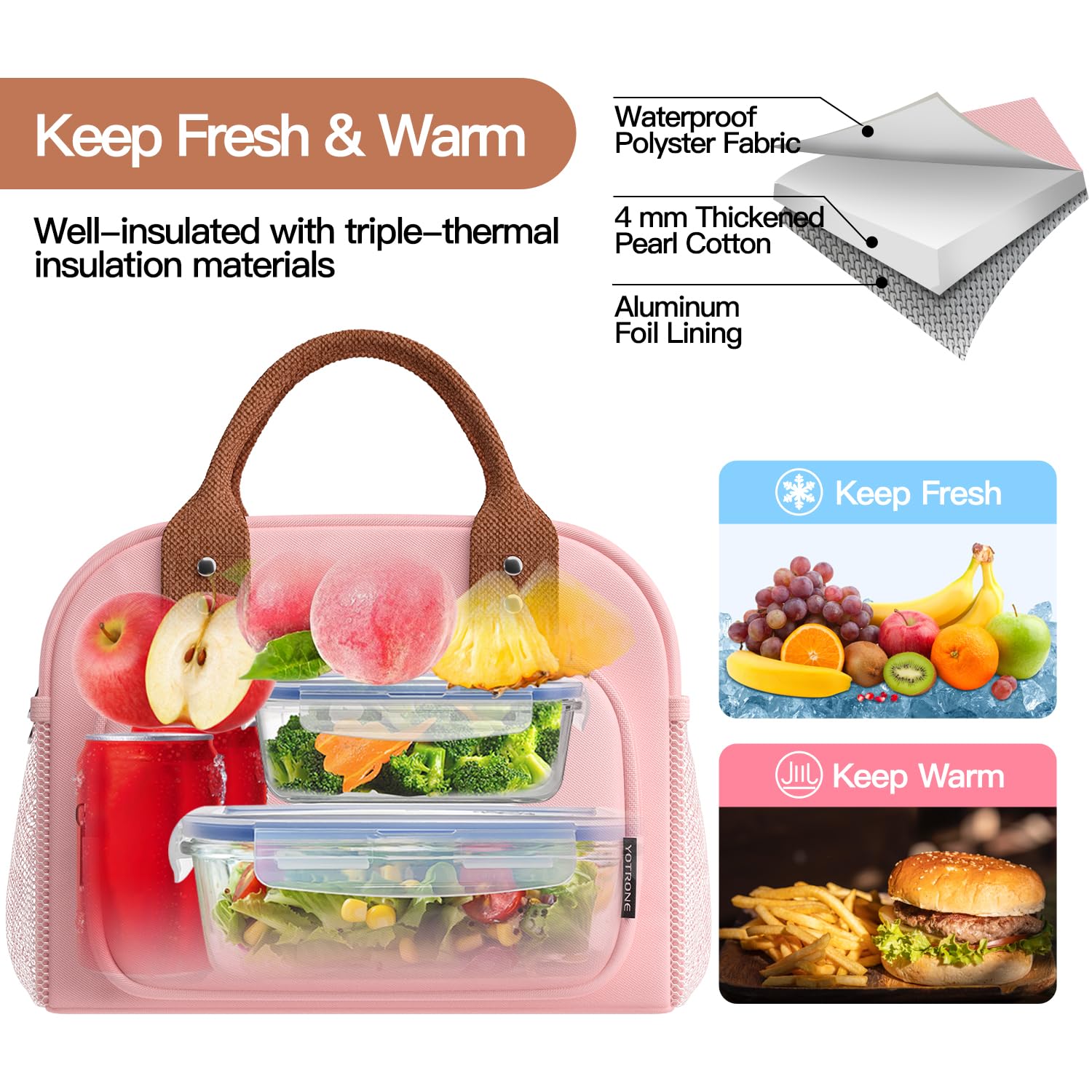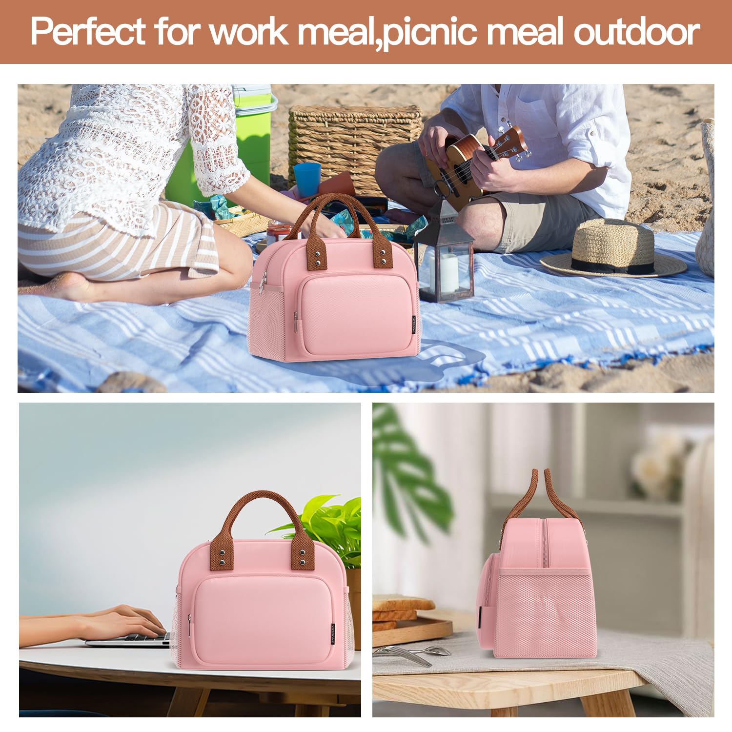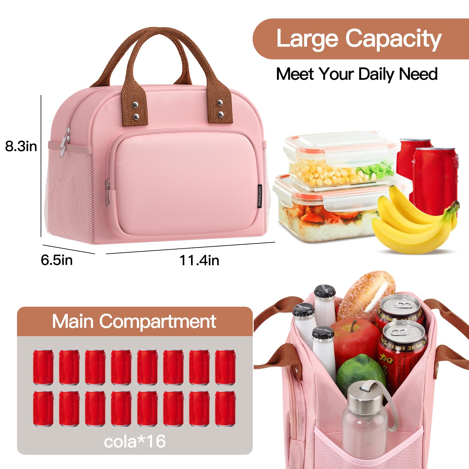 【PERFECT SIZE & LIGHT WEIGHT】: Lunch bag is the perfect size at 11.4 *6.5 *8.3 inches, weighing only 0.48 pounds, with a large capacity of about 10L. It comfortably fits your lunch box, snacks, and drinks, while being compact enough to fit in your fridge or storage cabinet.Cute lunch bags for women is super light weight and easy to carry, making it the perfect standard size for everyday use.