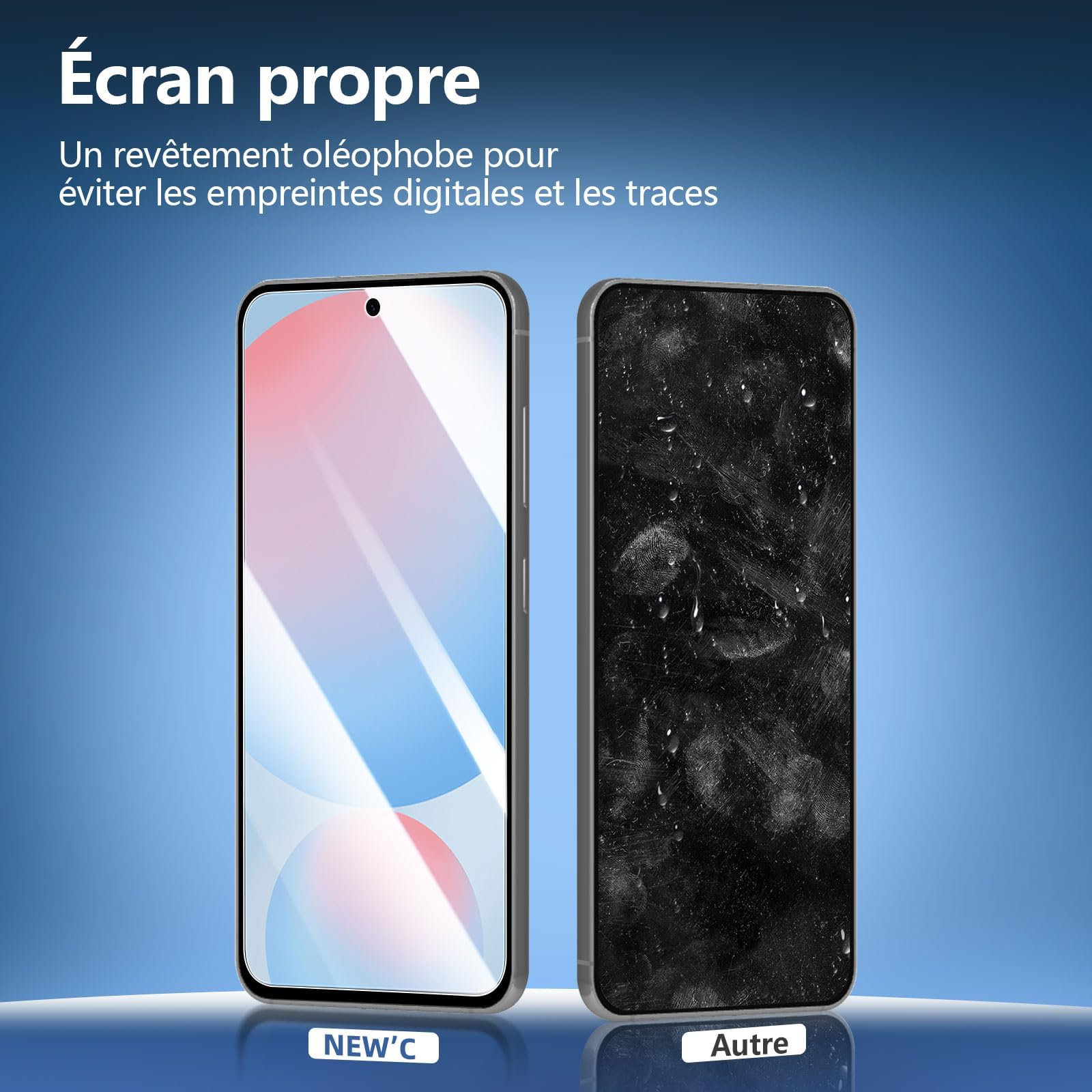 NEW'C Samsung Galaxy S25 FE Tempered Glass Screen Protector, delicate touch: coated on the back with a solid silicon adhesive which makes installation easy and attaches the film firmly so as not to affect the sensitivity of the touch screen