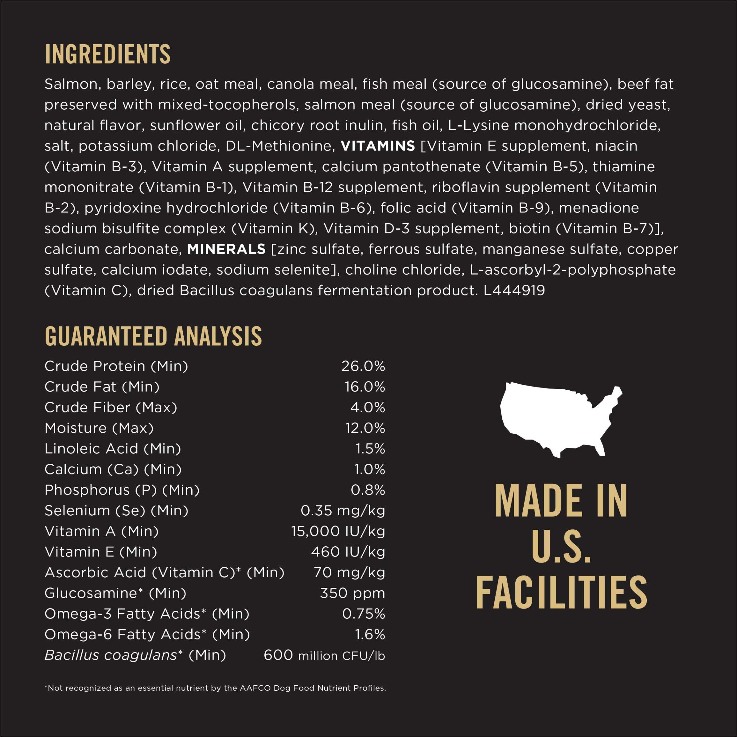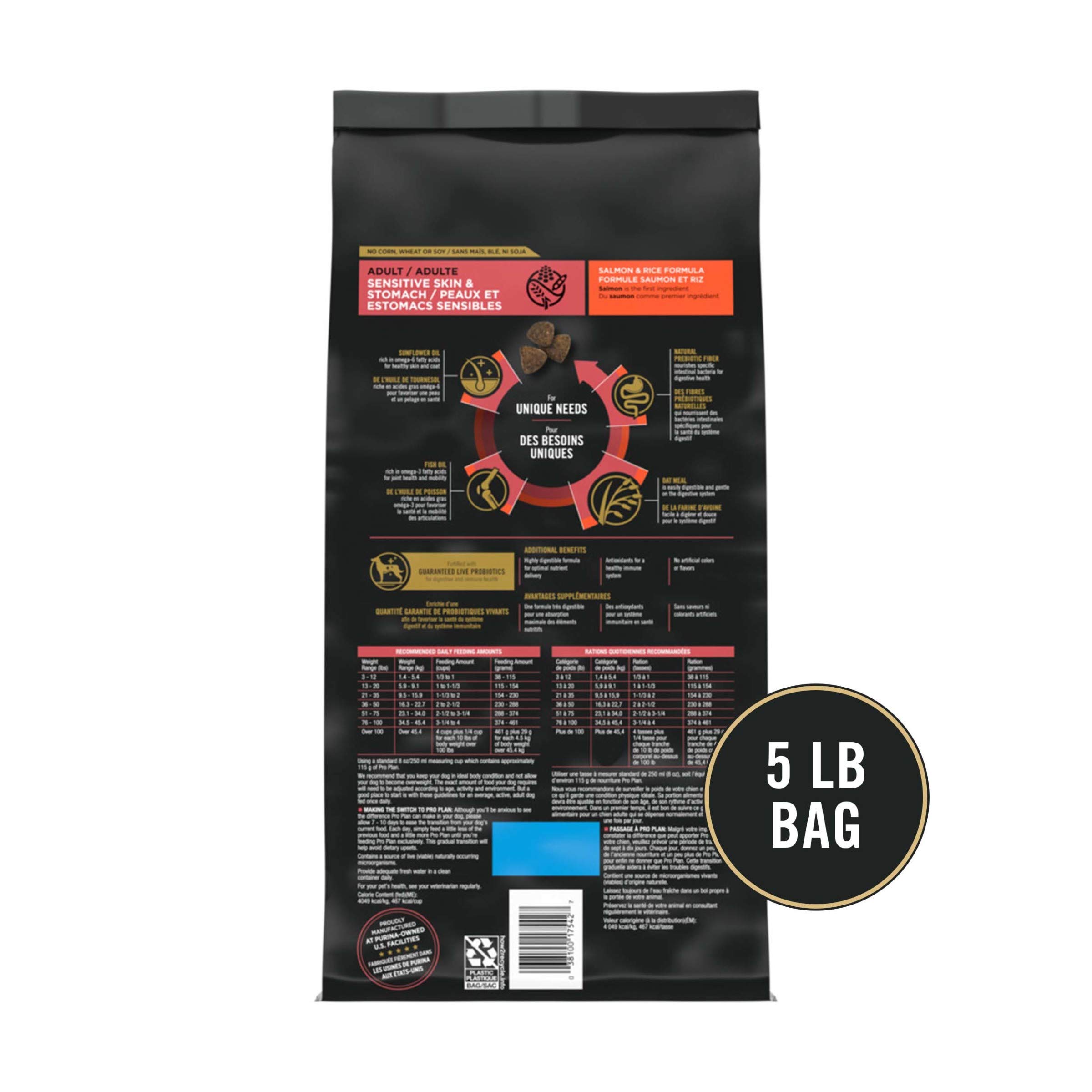Protect your dog's sensitive skin and stomach with Purina Pro Plan Brand Dog Food Sensitive Skin & Stomach Salmon & Rice Formula adult dry dog food. Nutrient-rich salmon is the first ingredient and a high-quality source of protein in sensitive skin and stomach dog food. This adult dog food for sensitive stomachs boasts a highly digestible formula and nourishes the beneficial bacteria found in your dog's intestine for his digestive health. Ingredients such as rice and oat meal provide easily digestible sources of carbohydrates. Fish oil—rich in EPA, one of the omega-3 fatty acids—helps support healthy joints and mobility, while omega-6 fatty acids and vitamin A in this sensitive skin dog food nourish your dog's skin and keep his coat looking healthy. It's important to know the food you choose for your dog will help keep him healthy, happy and feeling extraordinary, and that's what Purina Pro Plan Brand Dog Food Sensitive Skin & Stomach Salmon & Rice Formula adult dry dog food does.