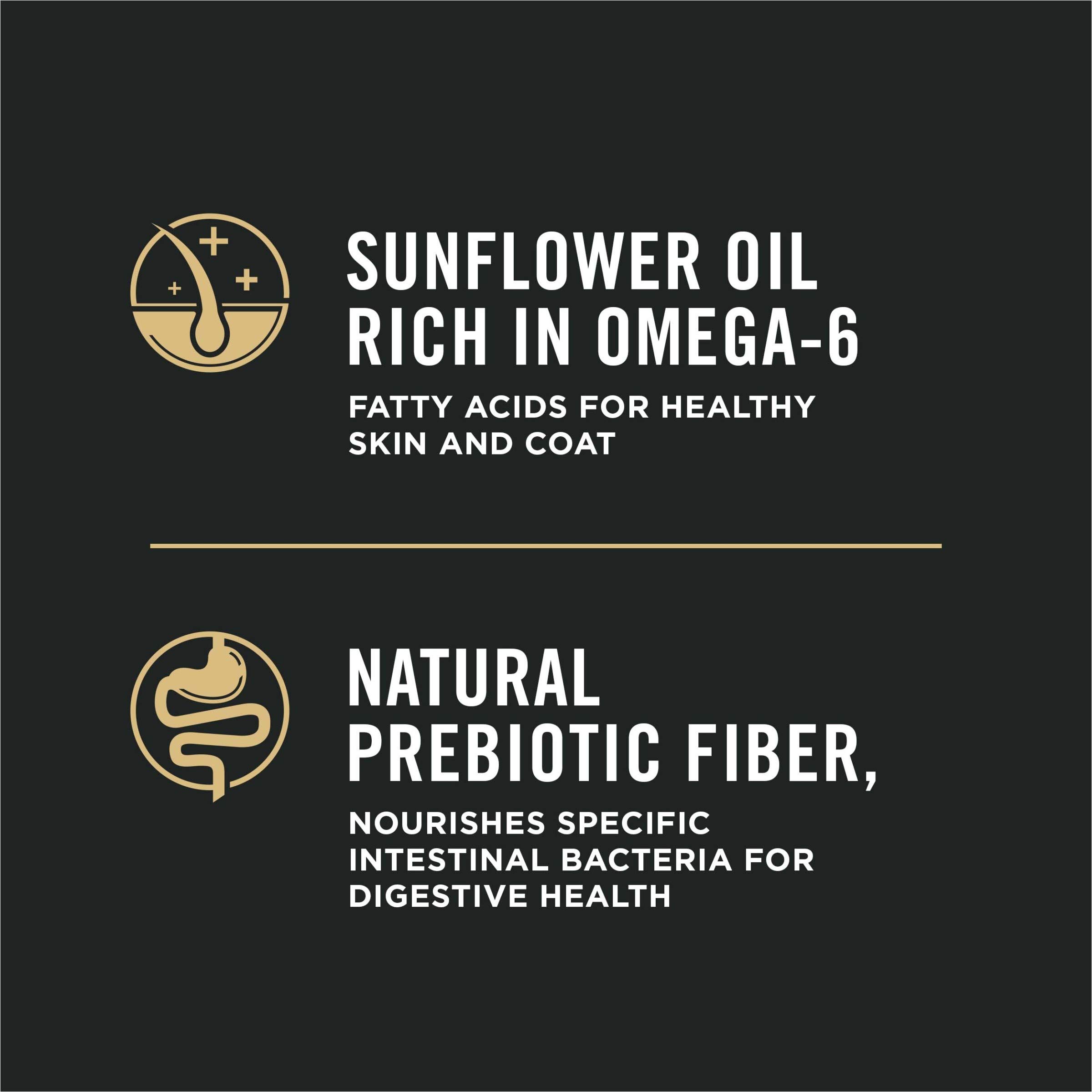 Sunflower oil rich in omega-6 fatty acids for healthy skin and coat. Natural prebiotic fiber nourishes specific intestinal bacteria for digestive health