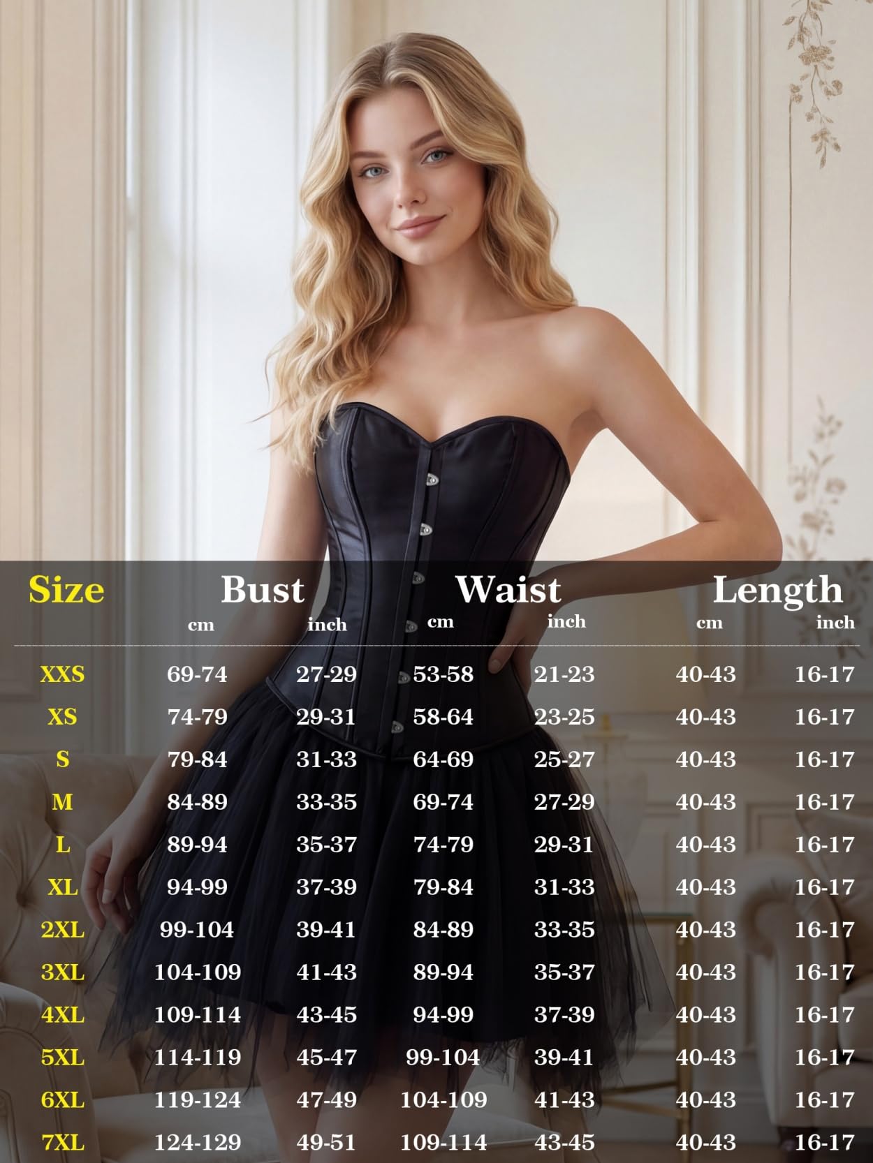 DESIGNED FOR REAL CURVES: Available from XXS to 7XL, our plus size corset is cut to fit real body shapes. Please follow our detailed size chart and measuring guide in the images for the best fit.