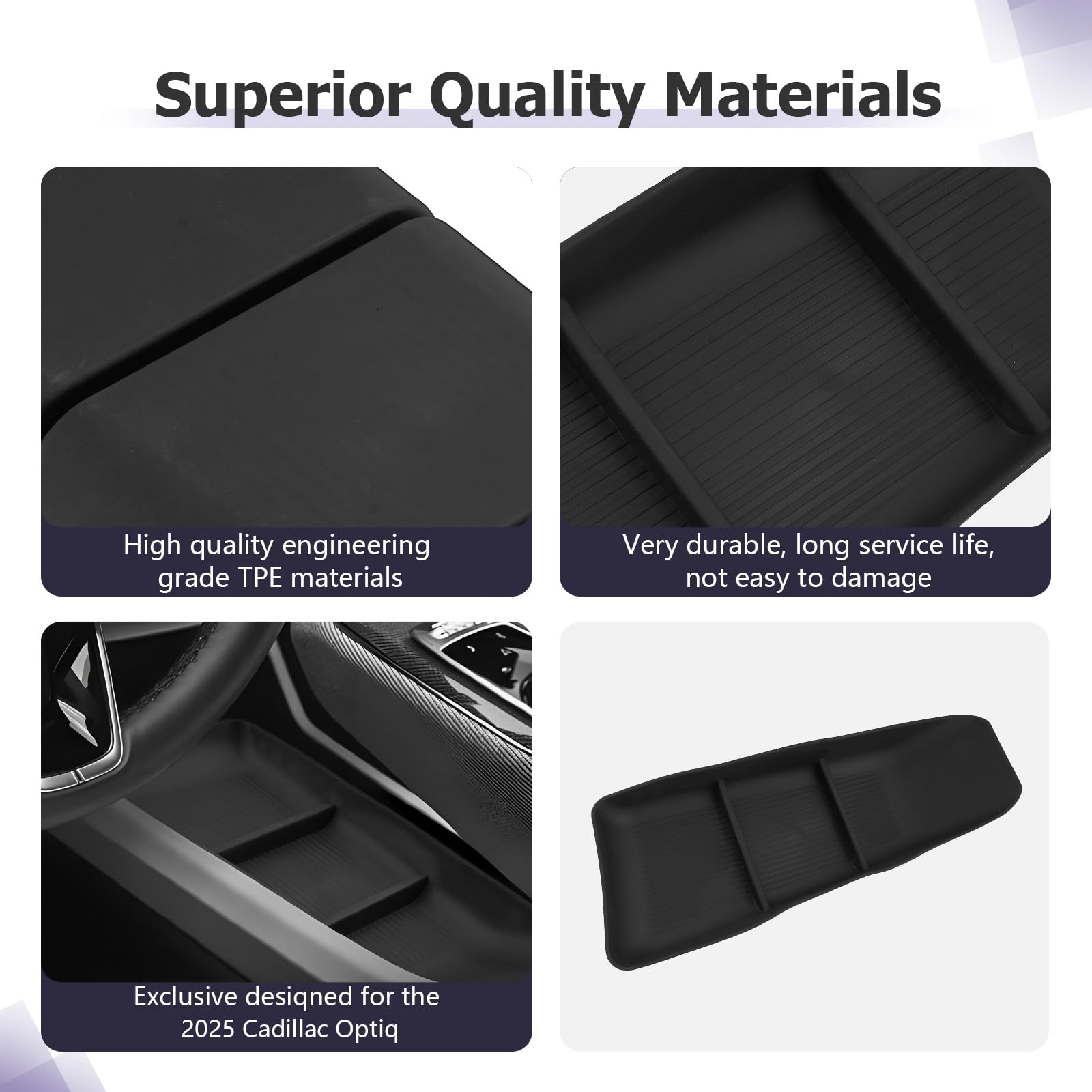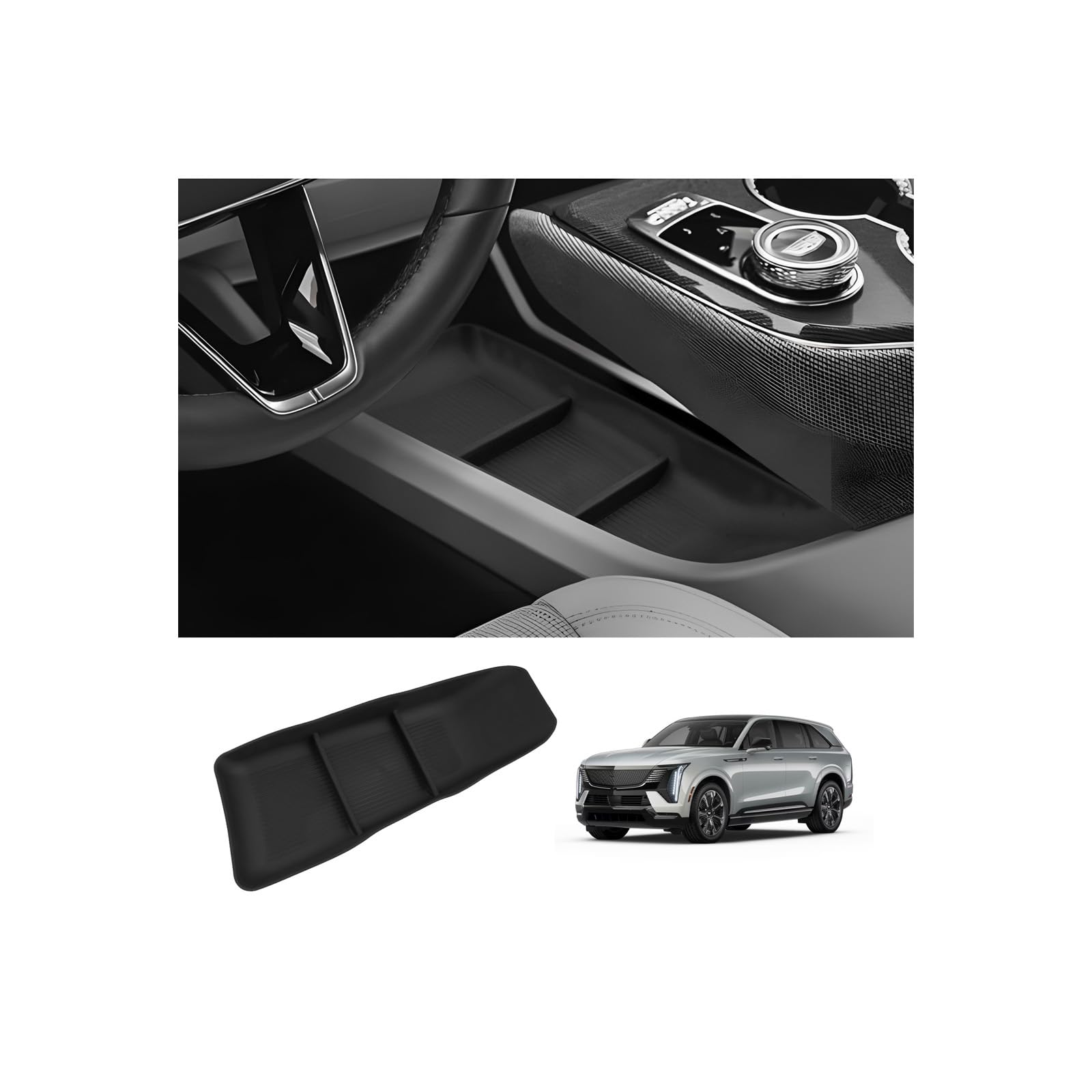Easy to clean — The Cadillac Optiq accessories 2025,2025 Cadillac Optiq accessories,car armrest glove box 2025 Cadillac Optiq accessories contains a rubber tray bottom liner, which can be placed when picking up keys or other items to reduce collision noise. Cadillac Optiq glove box organizer can also be easily taken out and wiped with a wet wipe for easier cleaning