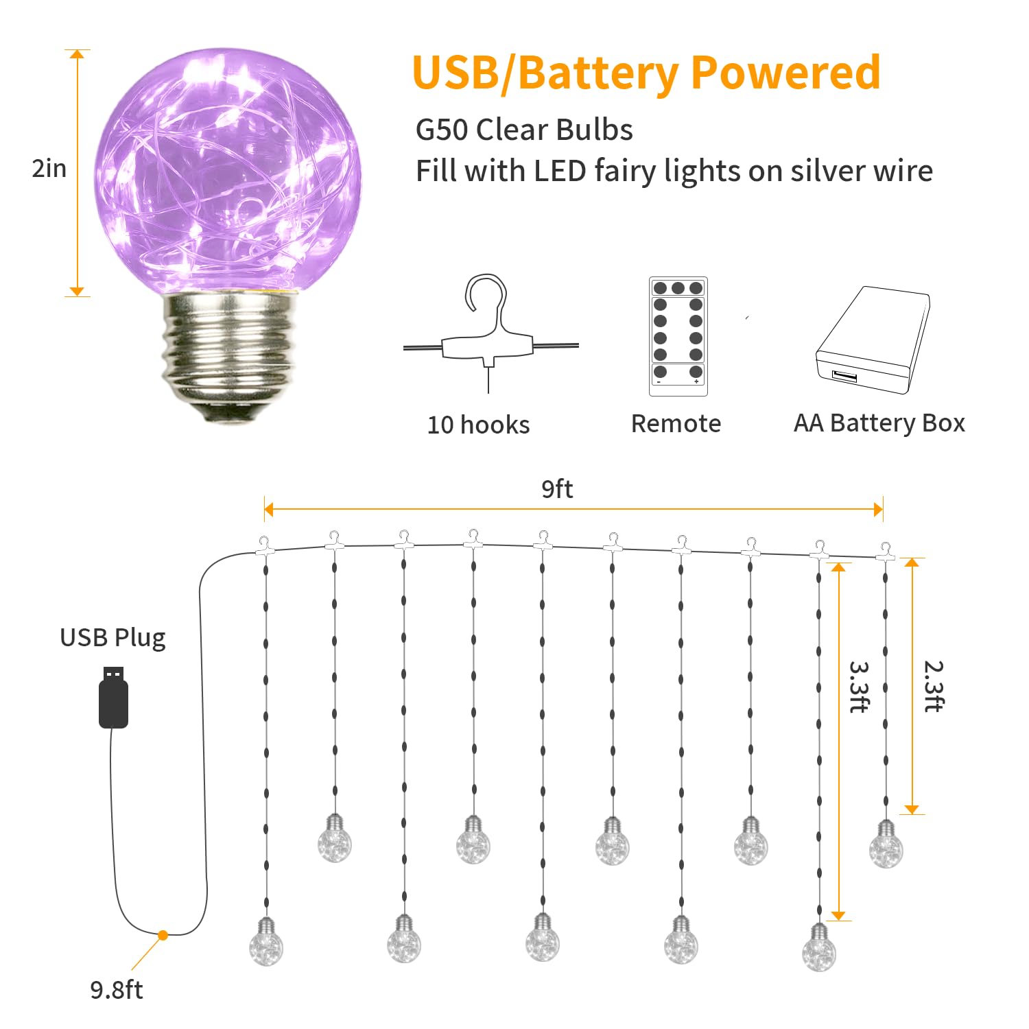 Easy to Install: Extremely lightweight, with built in hooks, the ball curtain lights is easy to be hung virtually anywhere. Easily slides along the curtains or backdrop, create walls of cascading light with little effort