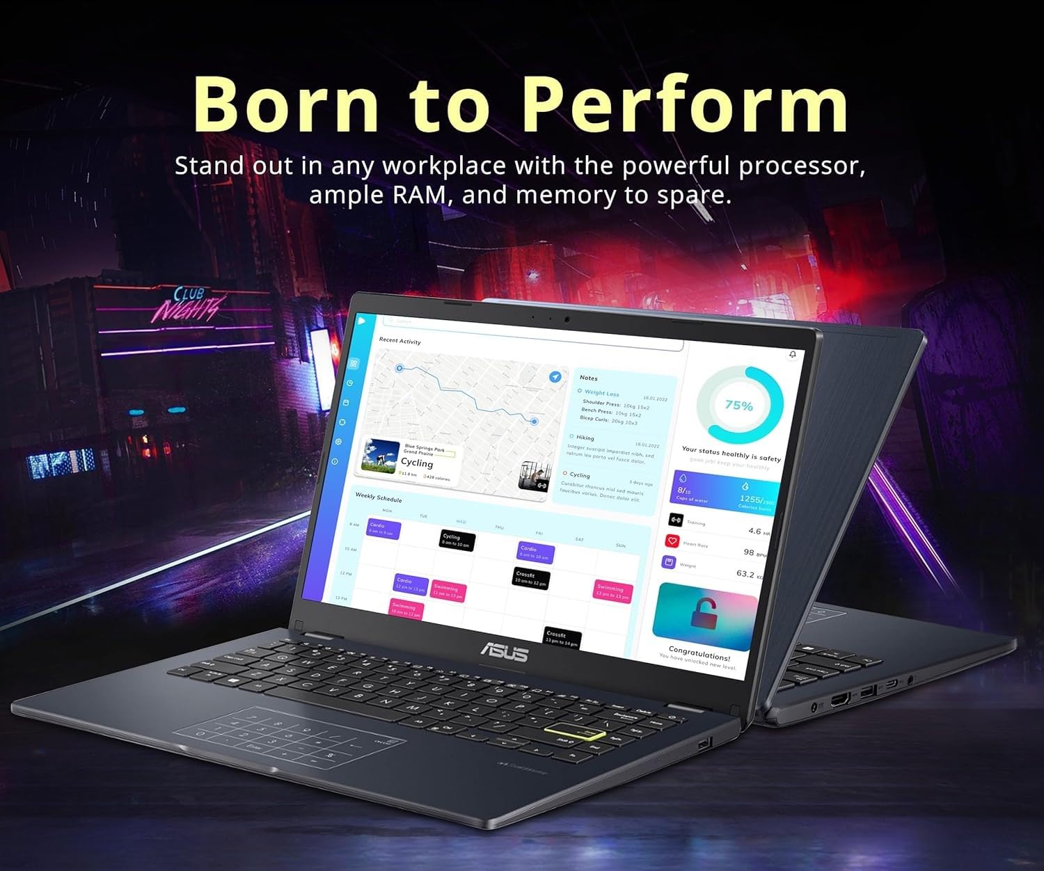 Enjoy everyday activities with this ASUS notebook PC. The Intel Celeron processor and 4GB of RAM let you run programs smoothly. Processor: Intel Celeron N4500, 1.1 GHz, Up to 2.8 GHz Screen: 14 inch FHD(1920 x 1080) LED Display RAM: 4GB DDR4 (On Board) Storage: 64GB eMMC Operating System: Windows 11 Home in S Mode Graphics: Intel Iris Xe Graphics Wireless Connectivity: Bluetooth, Wi-Fi Camera: Yes,720p Battery Life (up to): 10 hours Weight: 2.87 pounds Dimension: 12.8x 8.54x 0.71 inches Ports: 1 x HDMI 1.4, 1 x USB-A 2.0, 1 x USB-A 3.2, 1 x USB-C 3.2, 1x Media Card Reader, 1x Headphone Jack, 1x Microphone Input