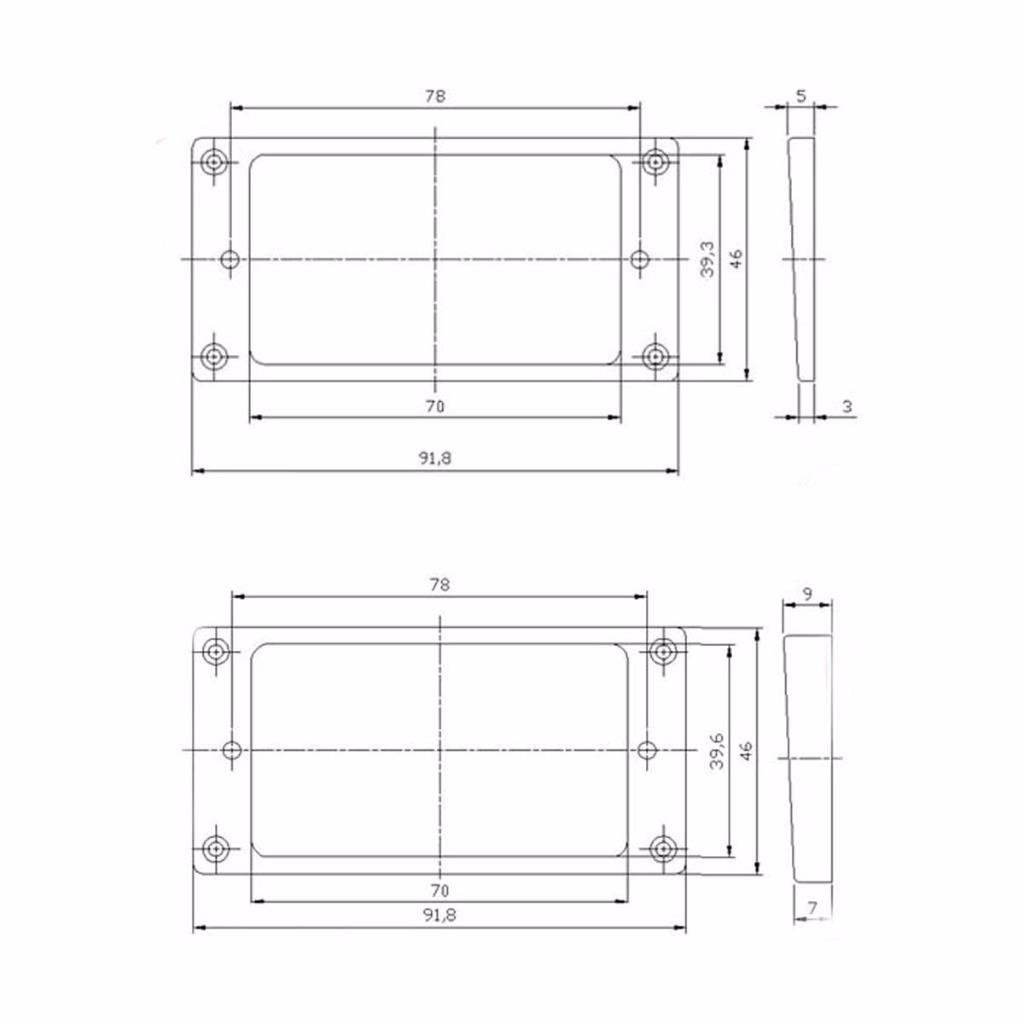 Space for humbucker pickup:70x39.3mm; Distance between two pickup height screws: 78mm; Frame height: 3x5mm and 7x9mm