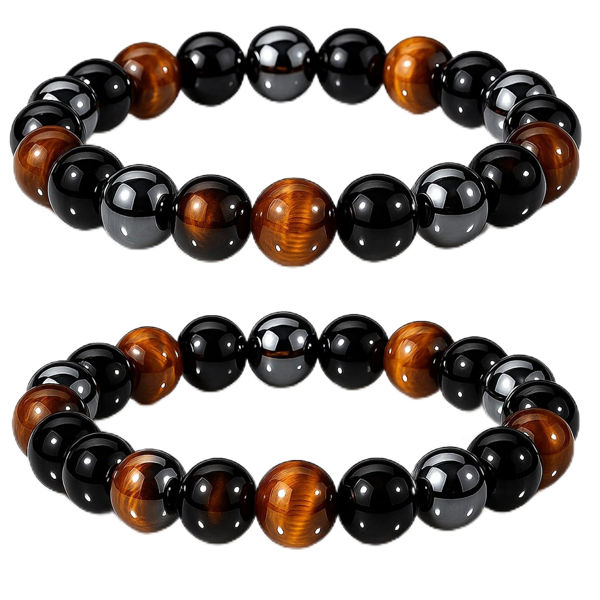 Mens Bracelets Size:The tiger eye stone and black matte agate stone bracelet can Stretch,Bead size:8mm,Adjustable Range: 7.3''-10.4''. Perfect sizes as gemstone bracelet for both men and women UNISEX. Natural tiger eye mens bracelet is a perfect bracelet jewelry accessory for any occasion to change your style and mood.