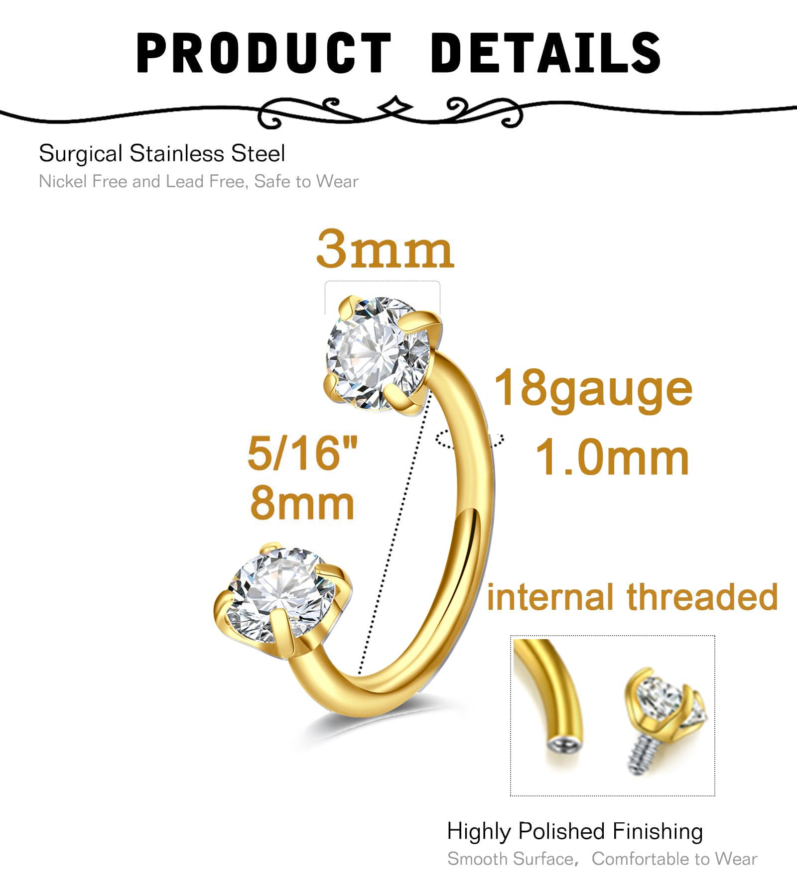 [Using]: Used as horseshoe nose ring 18g gold nose hoops 18 gauge nose ring hoop 18g half hoop Earring Hoops horse shoe nose rings for women 18g horseshoe nose ring