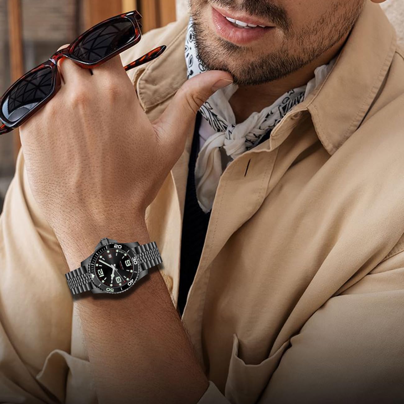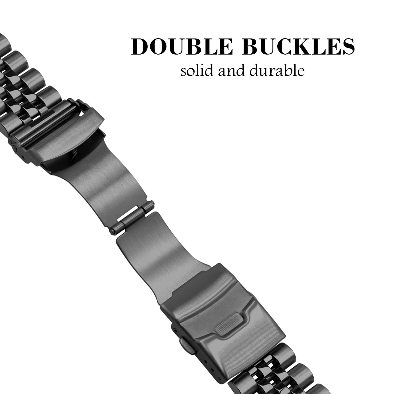 Elegant and classic design: Kai Tian curved end metal watch band has a high-tech surface, luxurious, noble and durable, the metallic luster makes the whole band look very textured, and the double-locking folding clasp is suitable for all kinds of important formal occasions