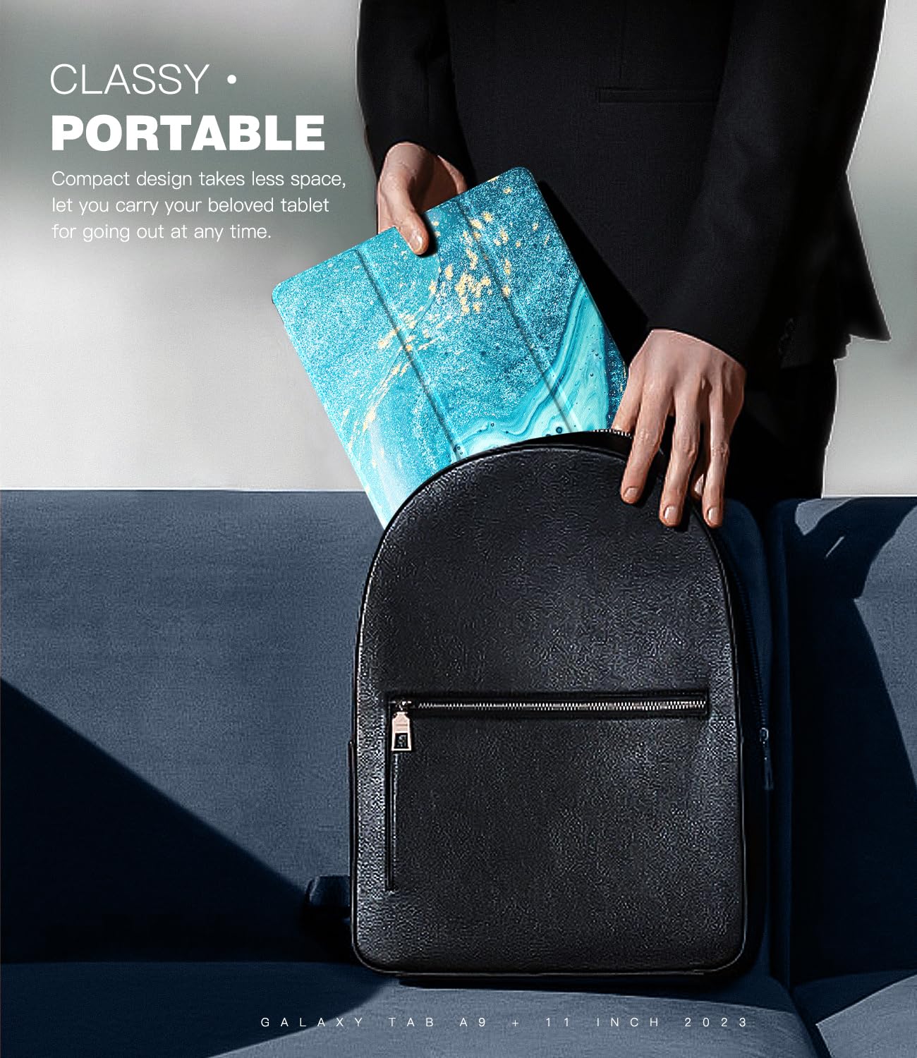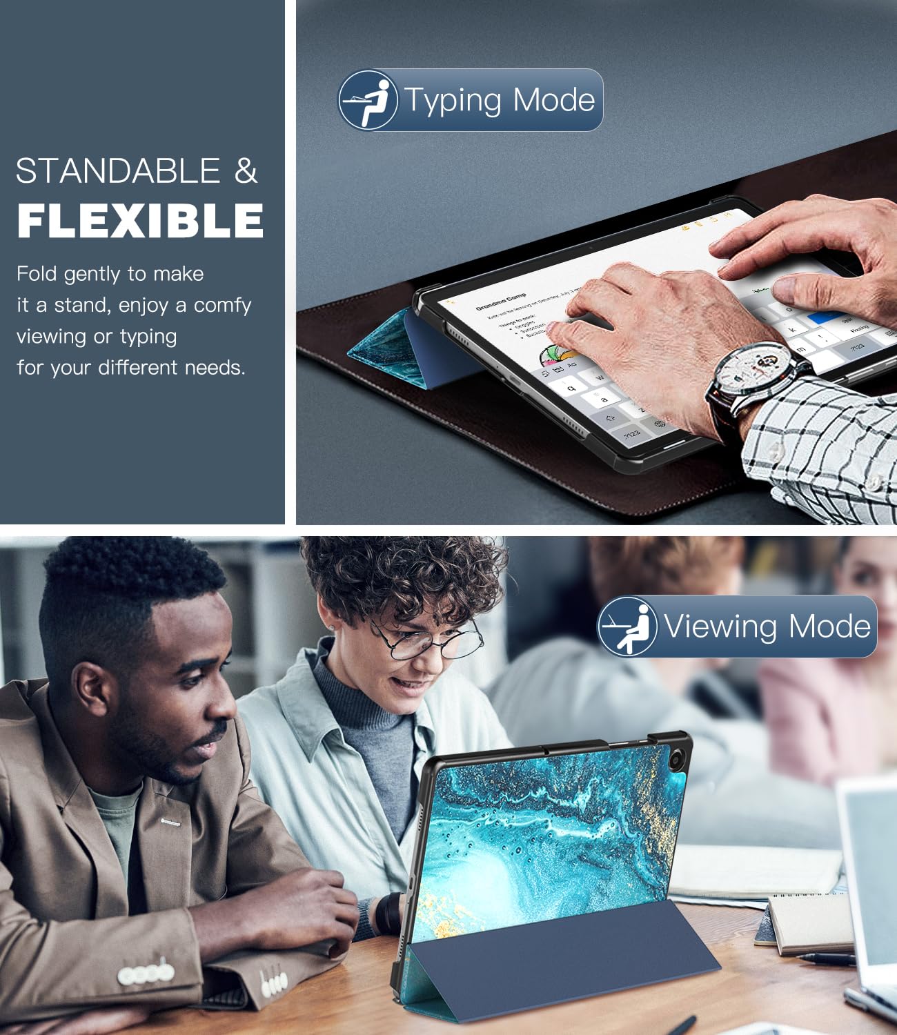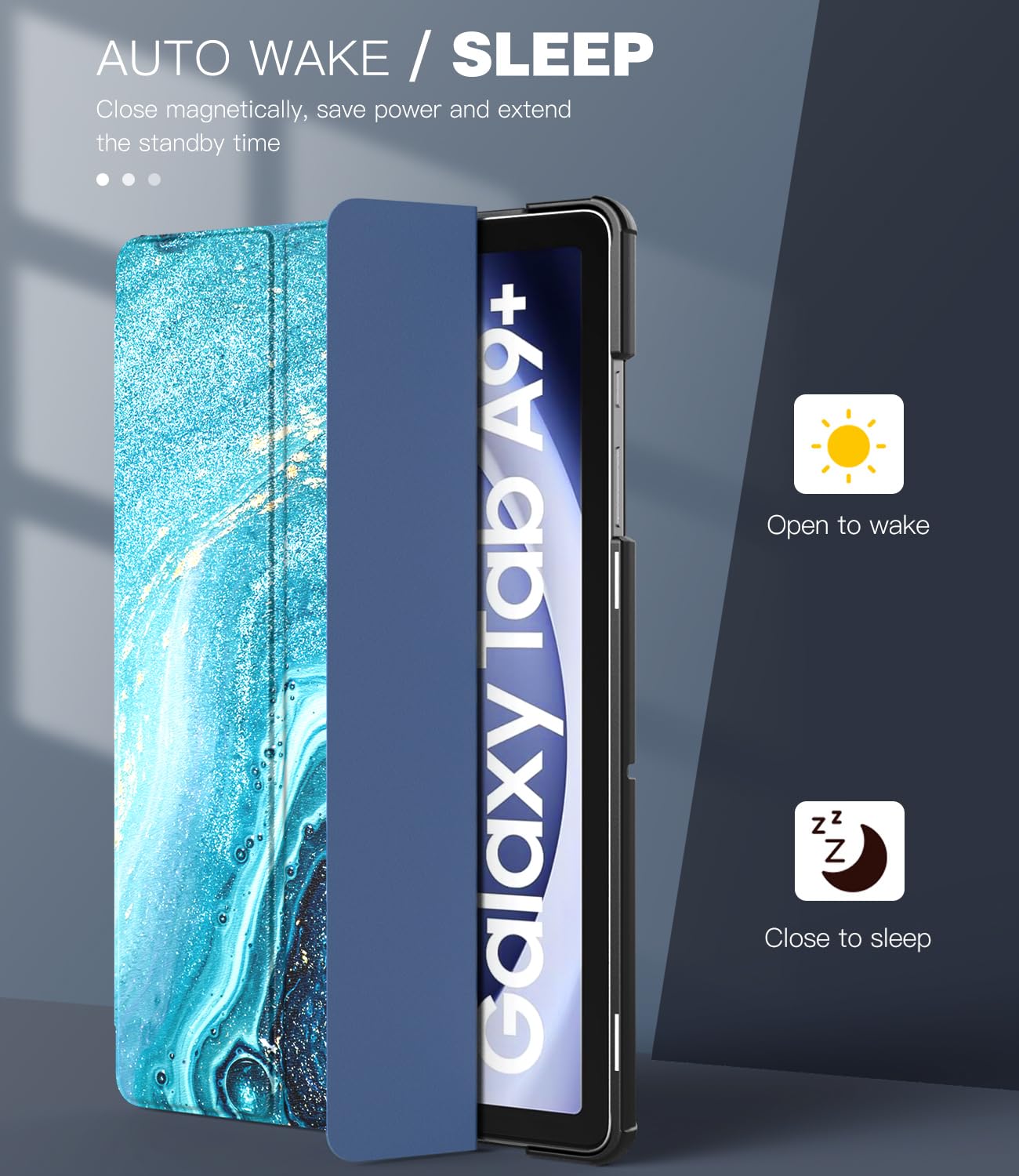 Adjustable Stand Angles: The top of this Galaxy Tab A9 Plus Case folds back to make a stand, which provides a sturdy stand position for both viewing and typing. Free your hands when watching, reading, or writing, a good way to alleviate neck strain