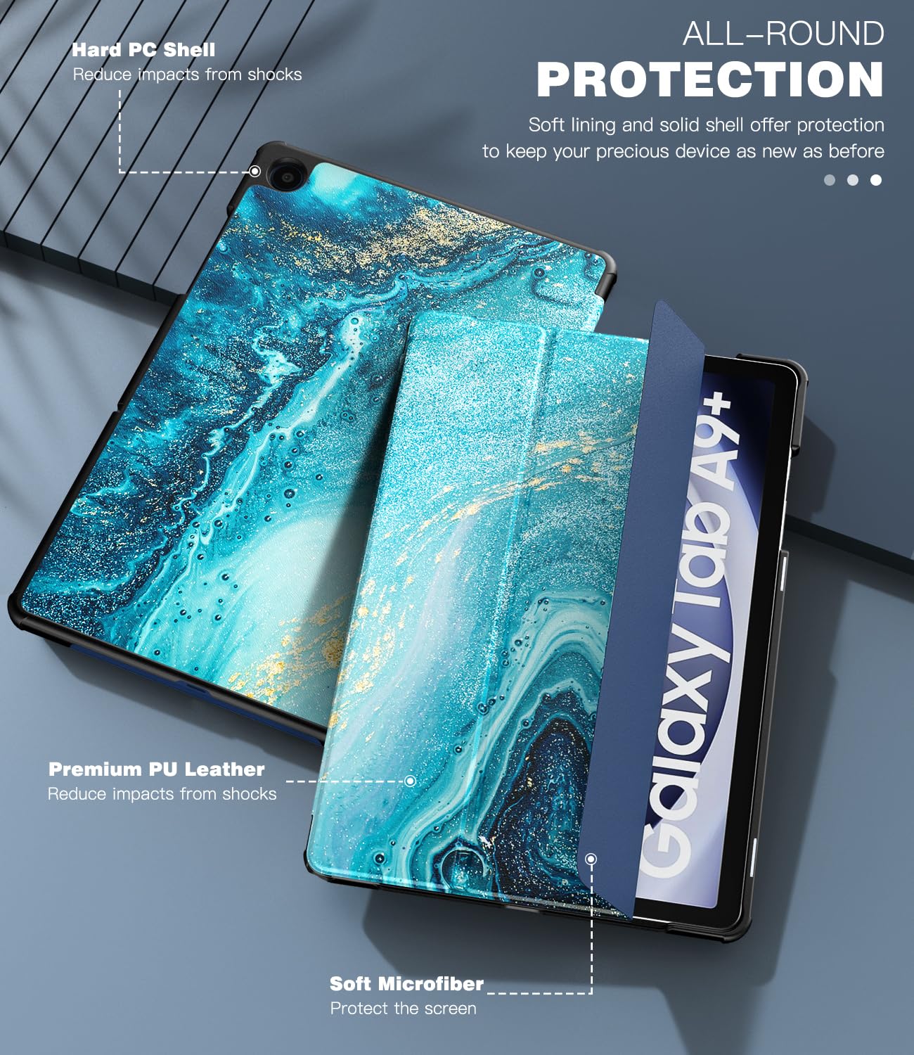 Premium Material: This Samsung A9 Plus Tablet Case is made of premium PU leather exterior, soft microfiber interior lining, and back hard PC cover design protect your tablet against the bumps and scratches of everyday life