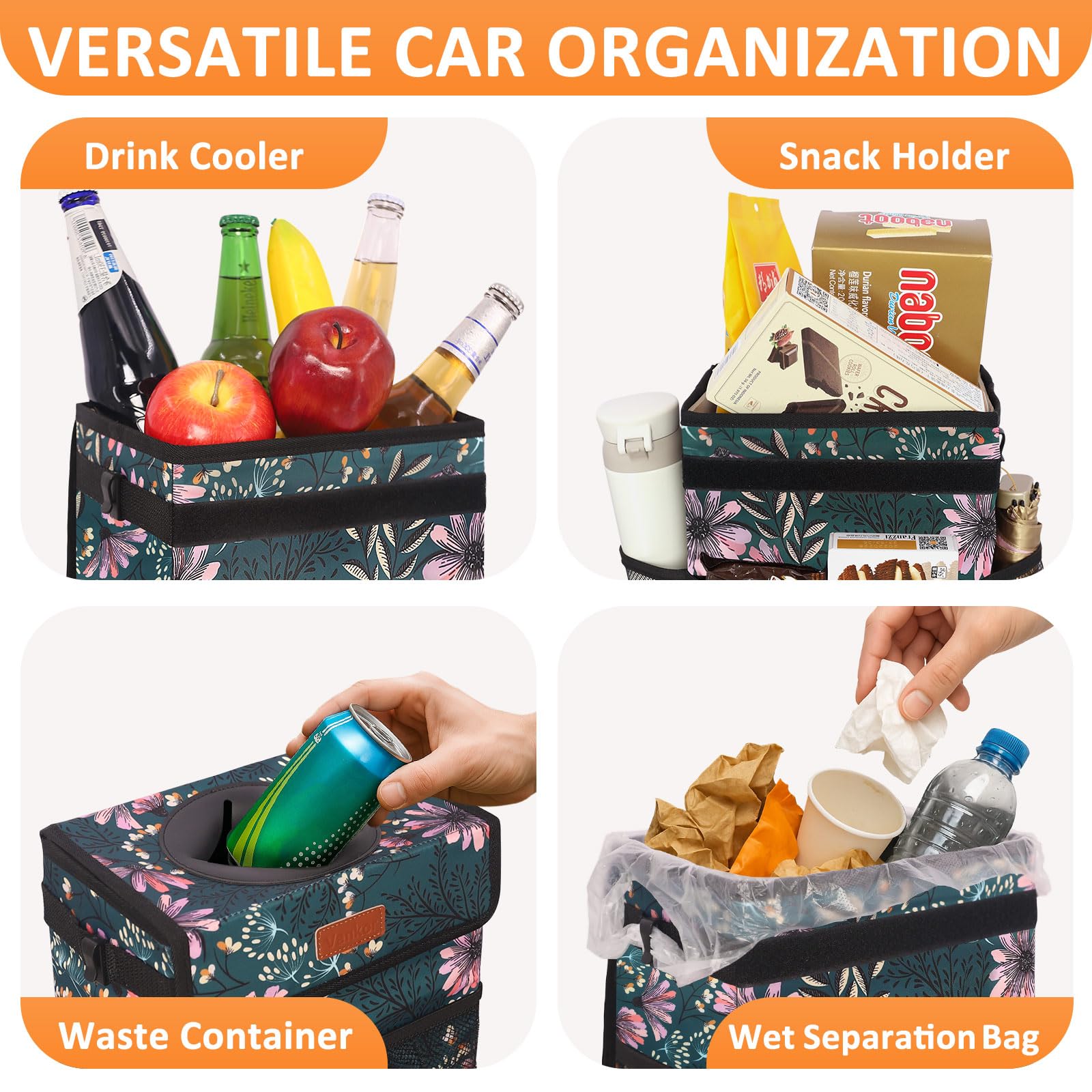 Wide Compatibility: An thoughtful solution for people who have the need for car neat and car interior storage; Perfectly fits varieties of types of vehicles including sedans, SUVs, RVs, trucks, vans, minivans, boats, campers, taxis, buses, etc; Auto trash can for car is very sturdy , has a long service life, and is very convenient to carry; The car trash can for the back seat is foldable, when you don't need it, just fold it up without taking up any space