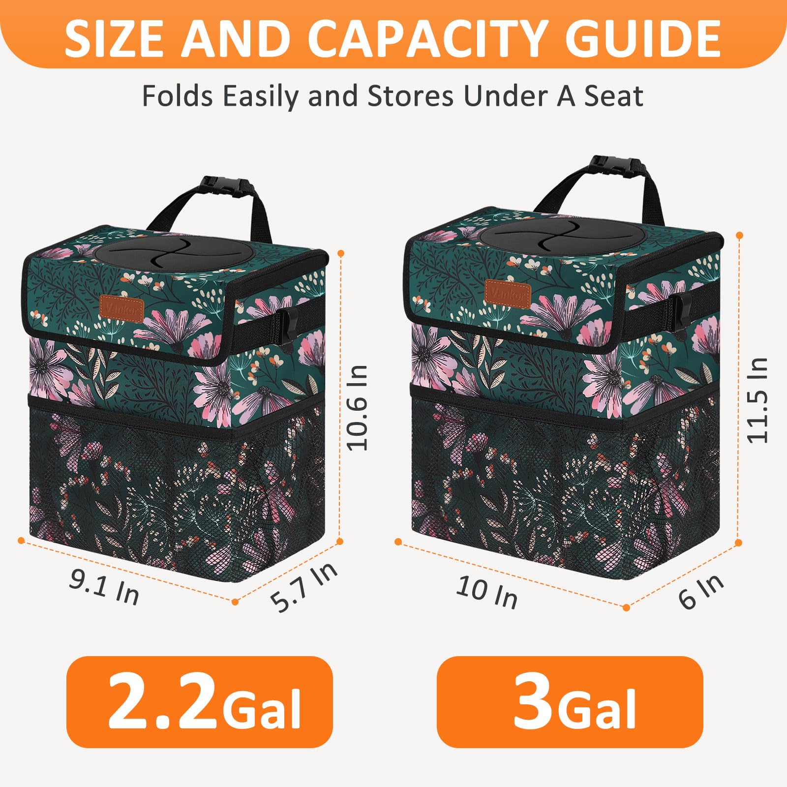 Intimate Design& Capacity: There are 2 side clasps for fixing disposable bags, effectively preventing falling out; Vankor car trash bags have about 2.2 and 3.0 Gallons for storage of car garbage or other stuff; Car trash bin has 100% leak-proof PEVA thick lining, no spillages will happen and is easy to be cleaned; The extra-large opening is made of elastic soft rubber, very roomy and easier to put litter into the bag, and helps to keep trash from spilling