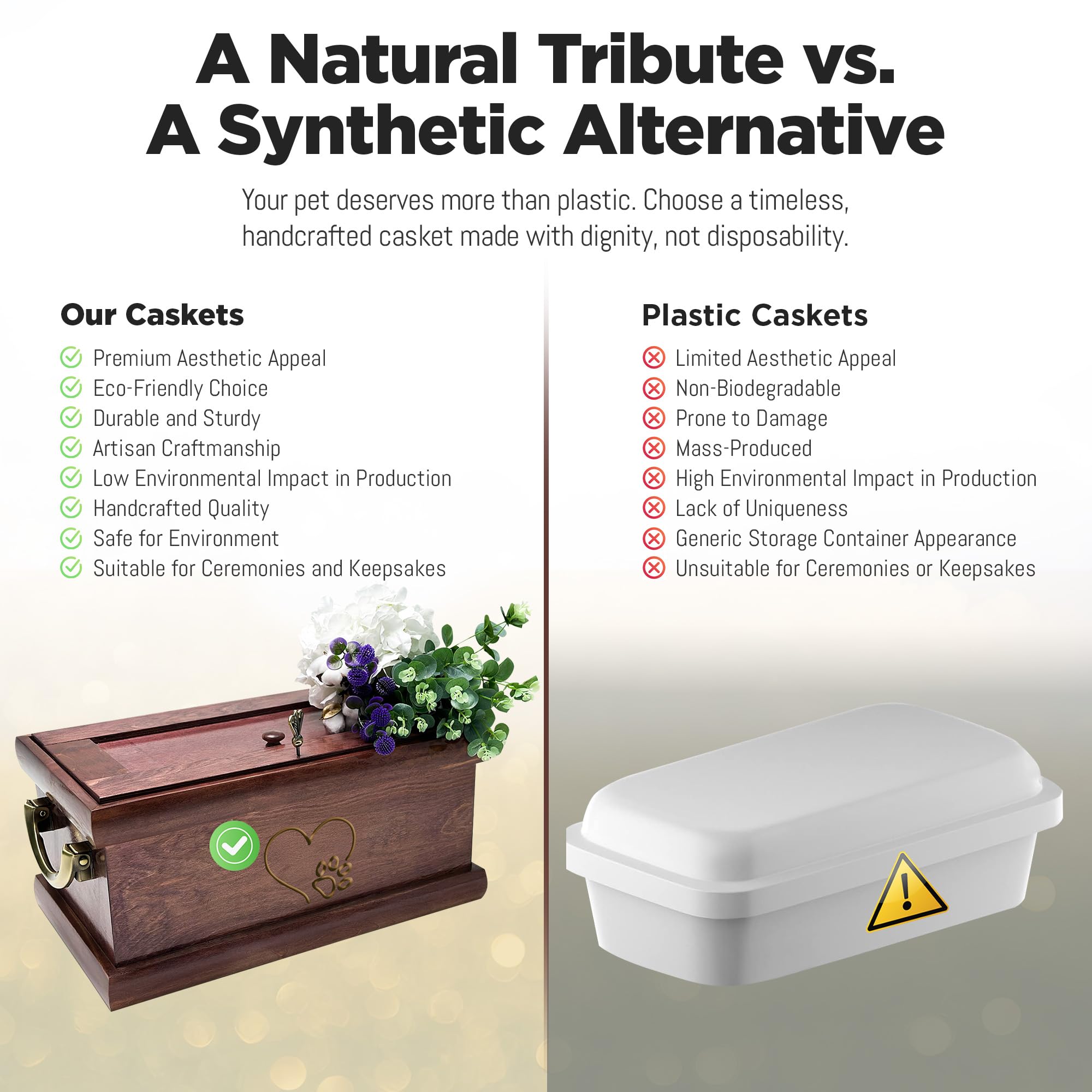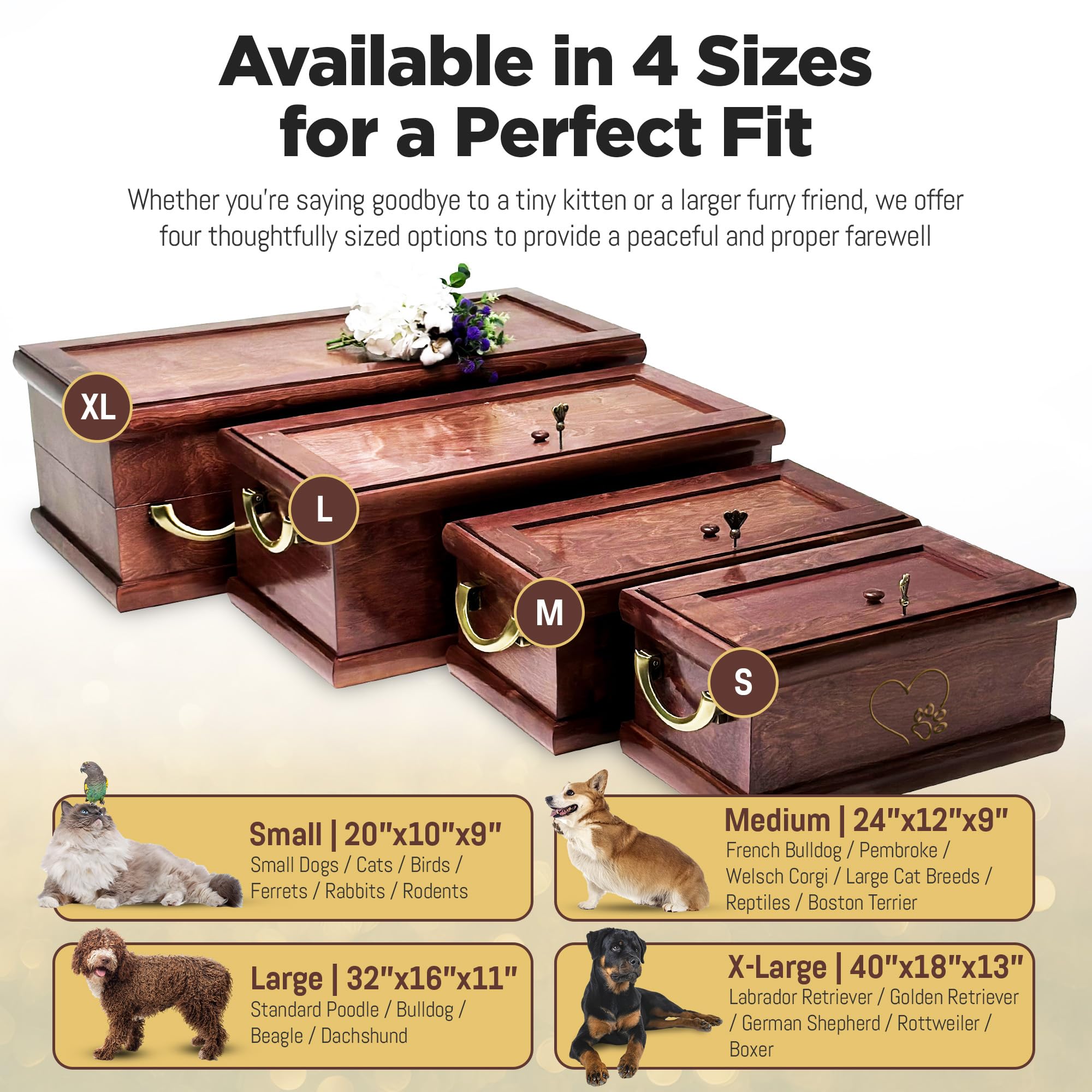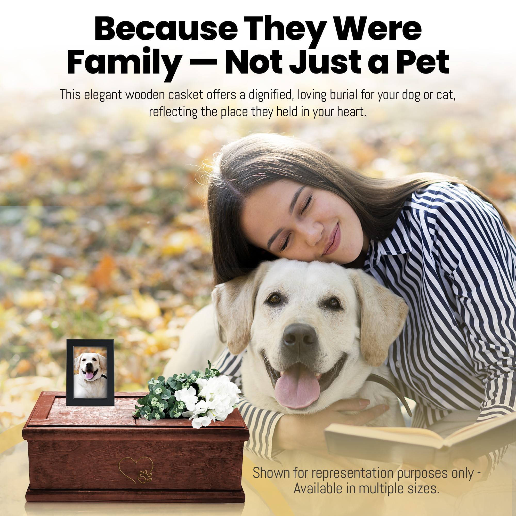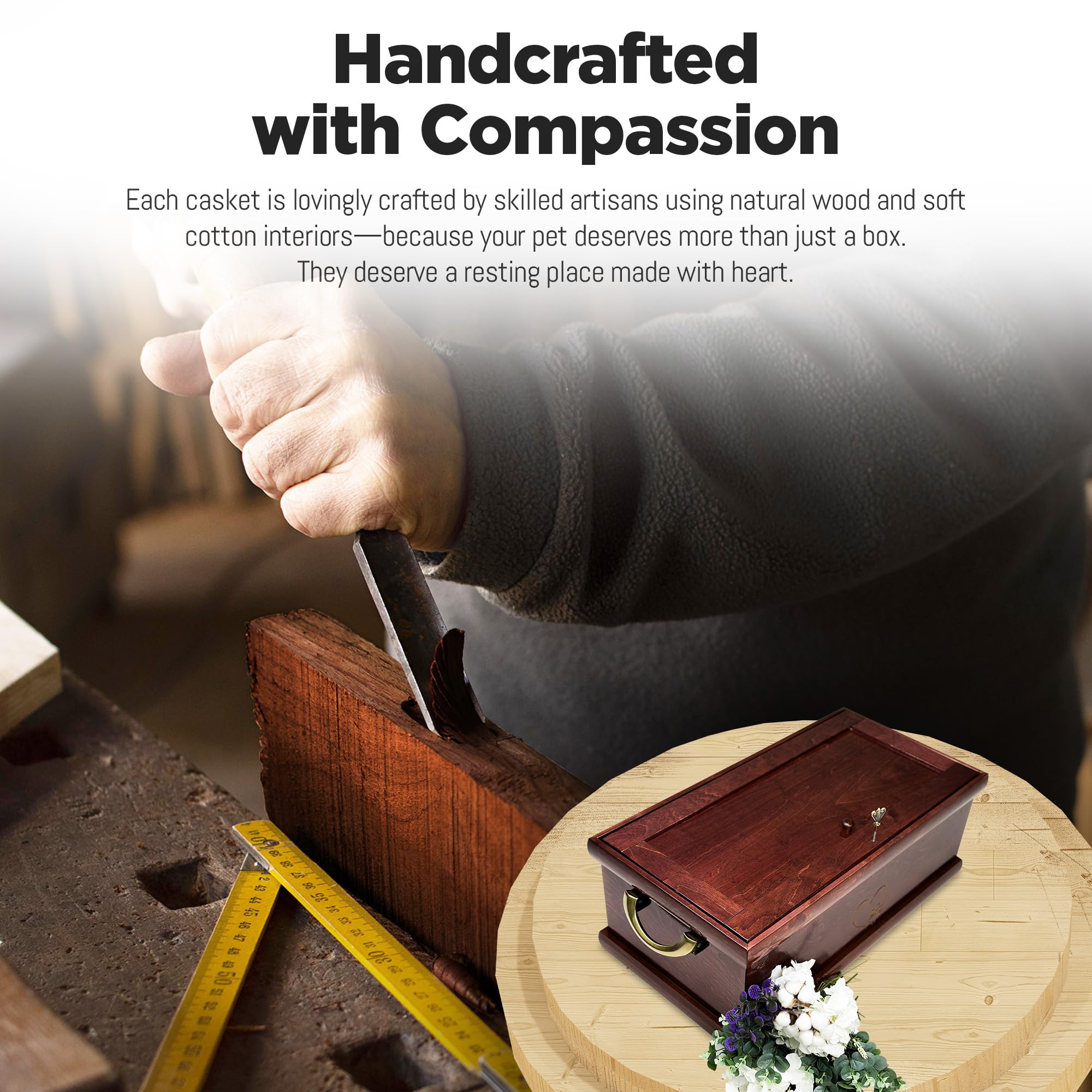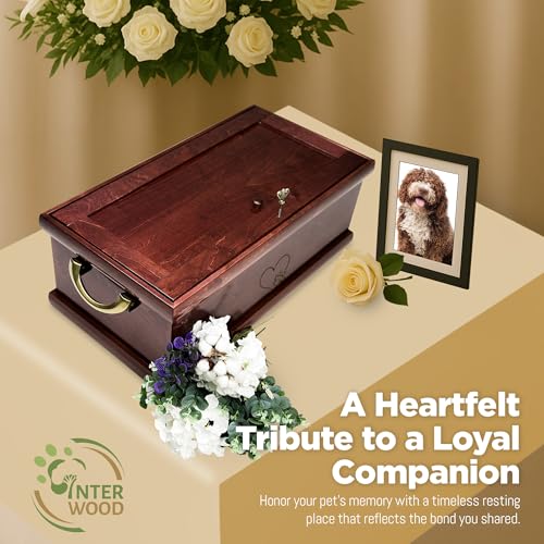 PREMIUM WOOD CRAFTSMANSHIP AND DURABILITY: Interwood Pet Funeral Caskets are masterfully handcrafted from high-quality cabinet-grade hardwoods, ensuring durability and a classic appearance. Honoring your beloved pets with respect, the solid wooden pet casket structure, along with the elegant design, not only enhances the casket’s beauty but also ensures that it’s sturdy and long-lasting. This provides a dignified resting place for your pet that will endure over time.