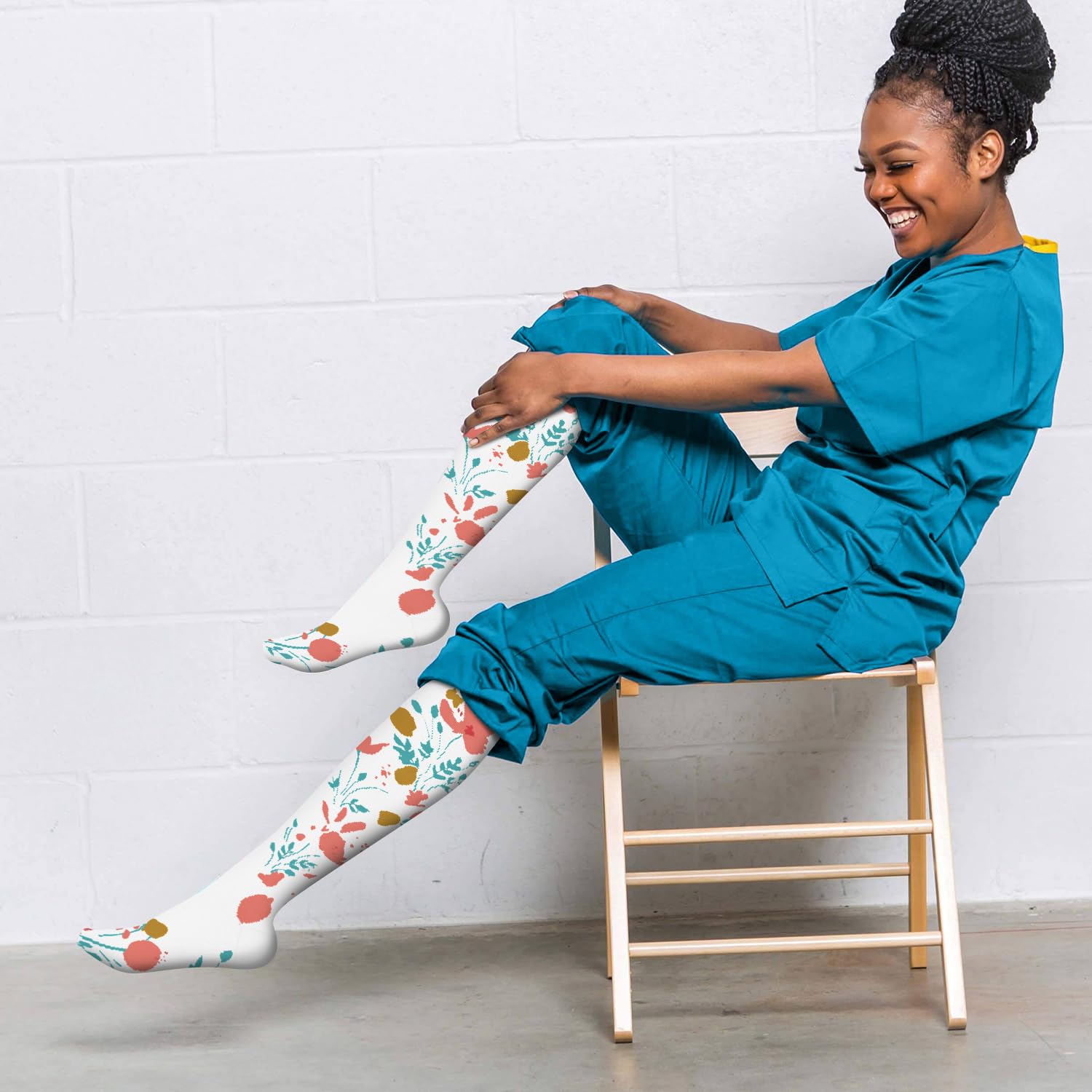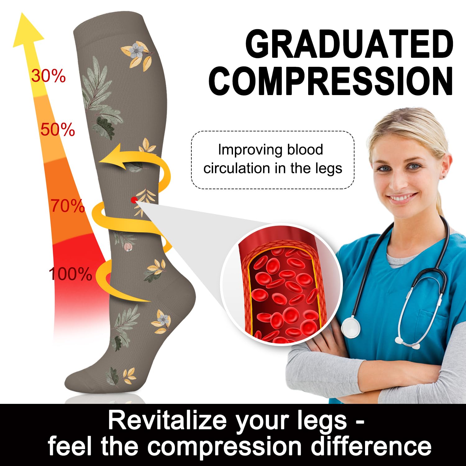 🆕 SUPERIOR FIT AND COMFORT -- Our compression socks now feature a premium nylon content increased from 40% to 85%, offering unparalleled 360-degree stretch for enhanced flexibility and durability. These socks provide snug, form-fitting support, ensuring comfort and stability throughout your day, whether you're at the office, hitting the gym, or on a long flight.