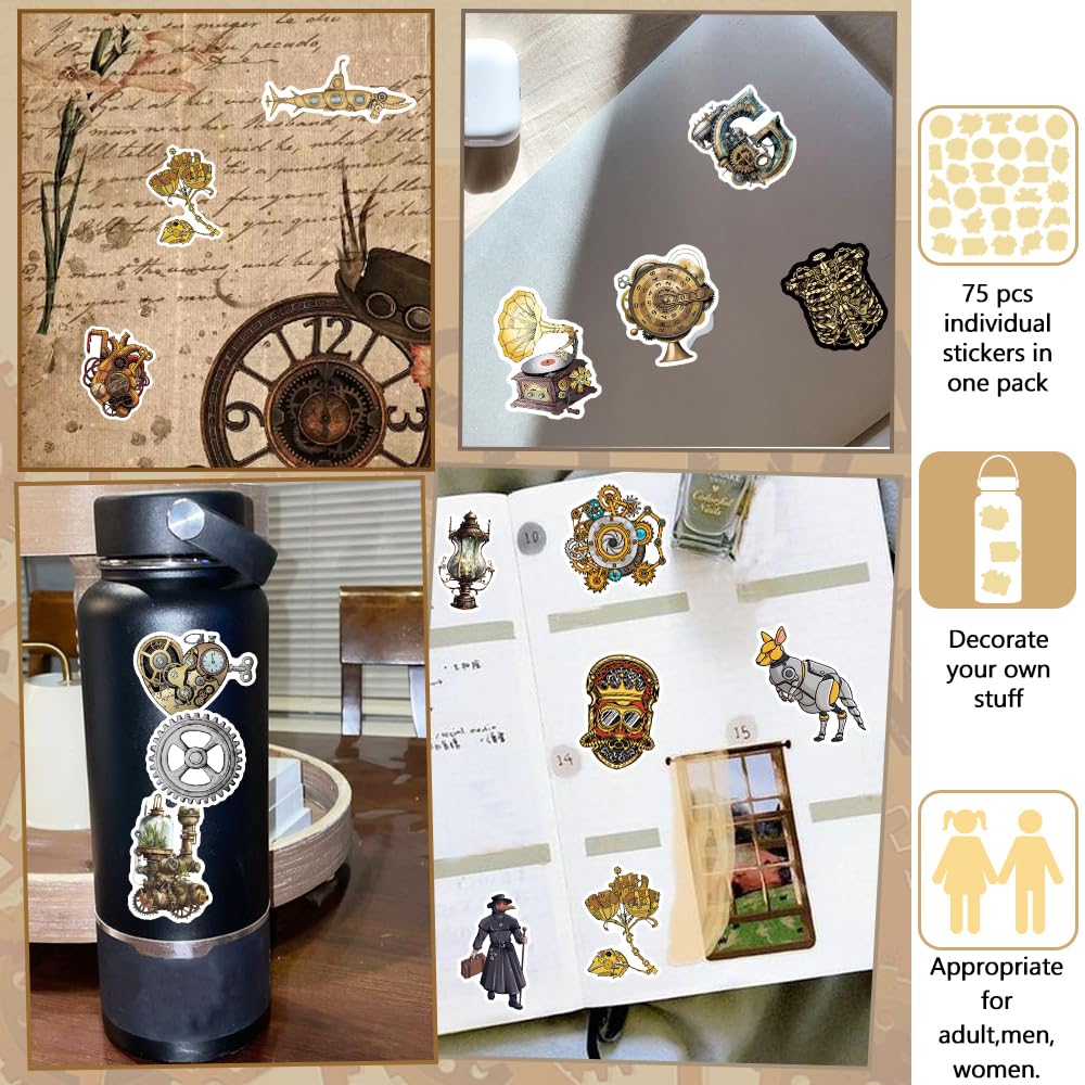 Steampunk Stickers for Scrapbooking:Comes with 75 pcs individual steampunk vintage style stickers pack.Steampunk gear stickers for kids,teens,adults,friends,family.(Size about 1.8-3.8 inch.)