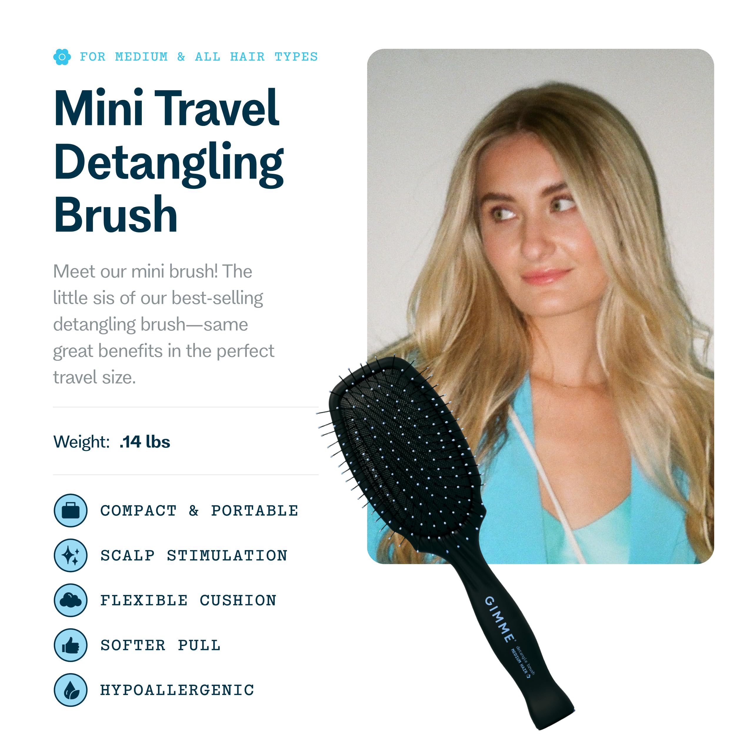 Premium Detangling Brush: Gimme Beauty’s Detangling Brush is designed to gently detangle extra fine or thin hair