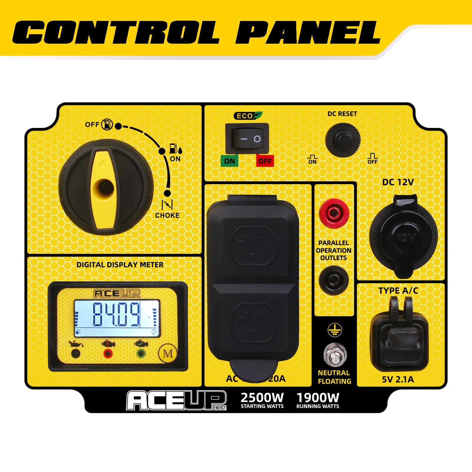 Intelligent gauge keeps track of voltage, run-time, fuel level, hertz and power output, plus feature low oil led and economic mode to save fuel