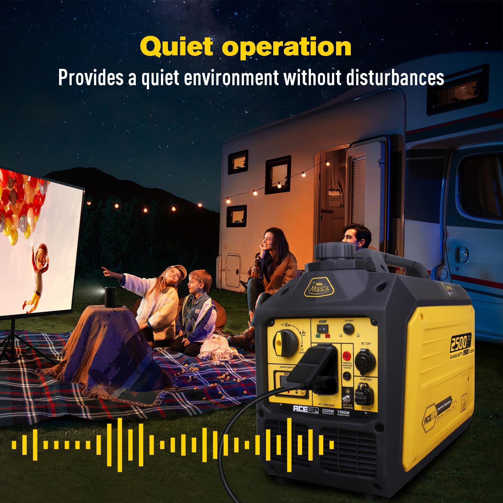 Powerful generator for home use equipped with 79.8cc 4-stroke OHV engine delivers 2500 peak watts and 1900 rated watts with recoil start, it can for up to 10 hours at quarter-load on 1.32 gallon fuel tank, 60Hz