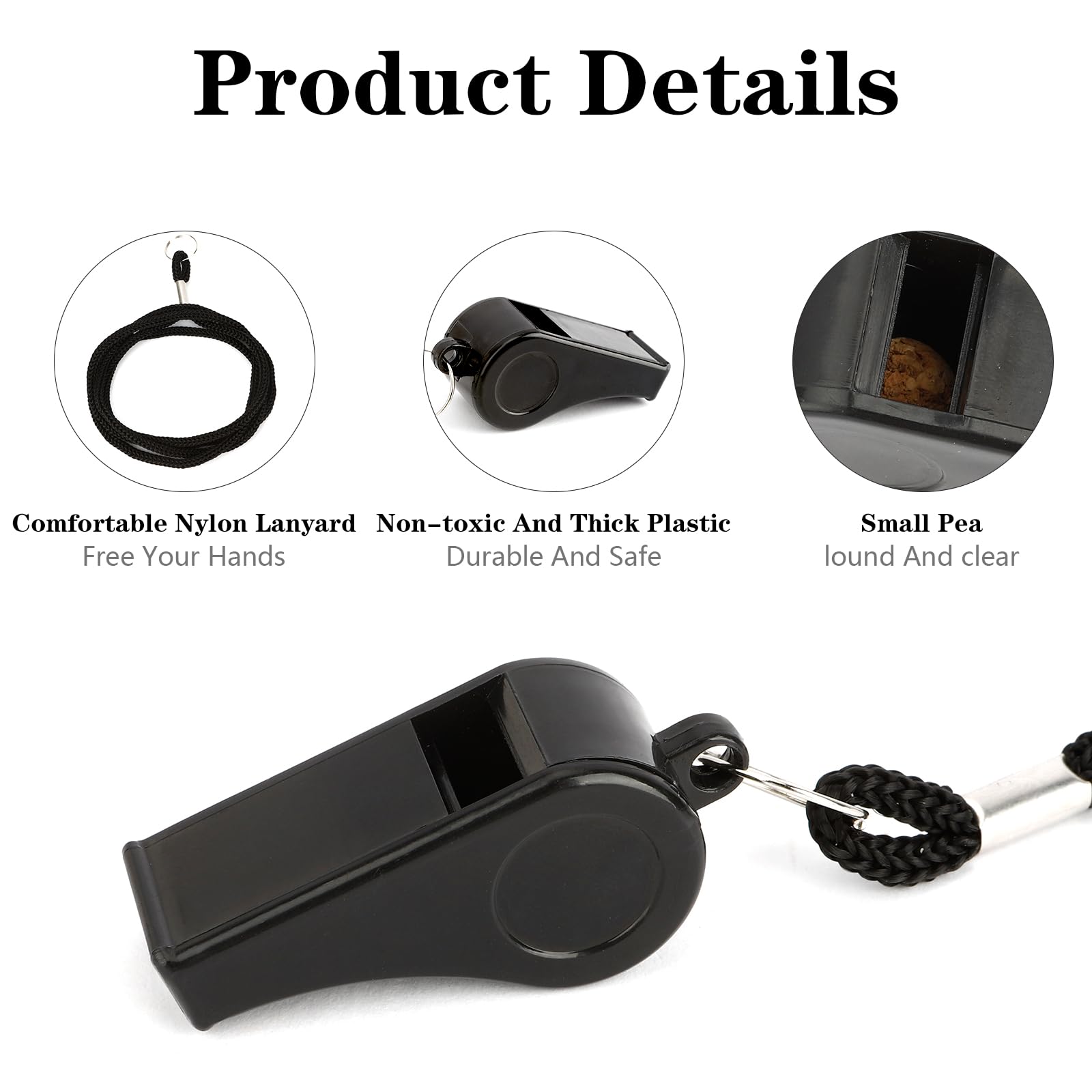 WIDELY USE-- You will get 2 Packs black plastic whistles. These whistles are great for sports, referees, coaches, training, teachers, survival, emergency, school, gym, rescue, camping, animal trainers, lifeguards, traffic police officers etc.