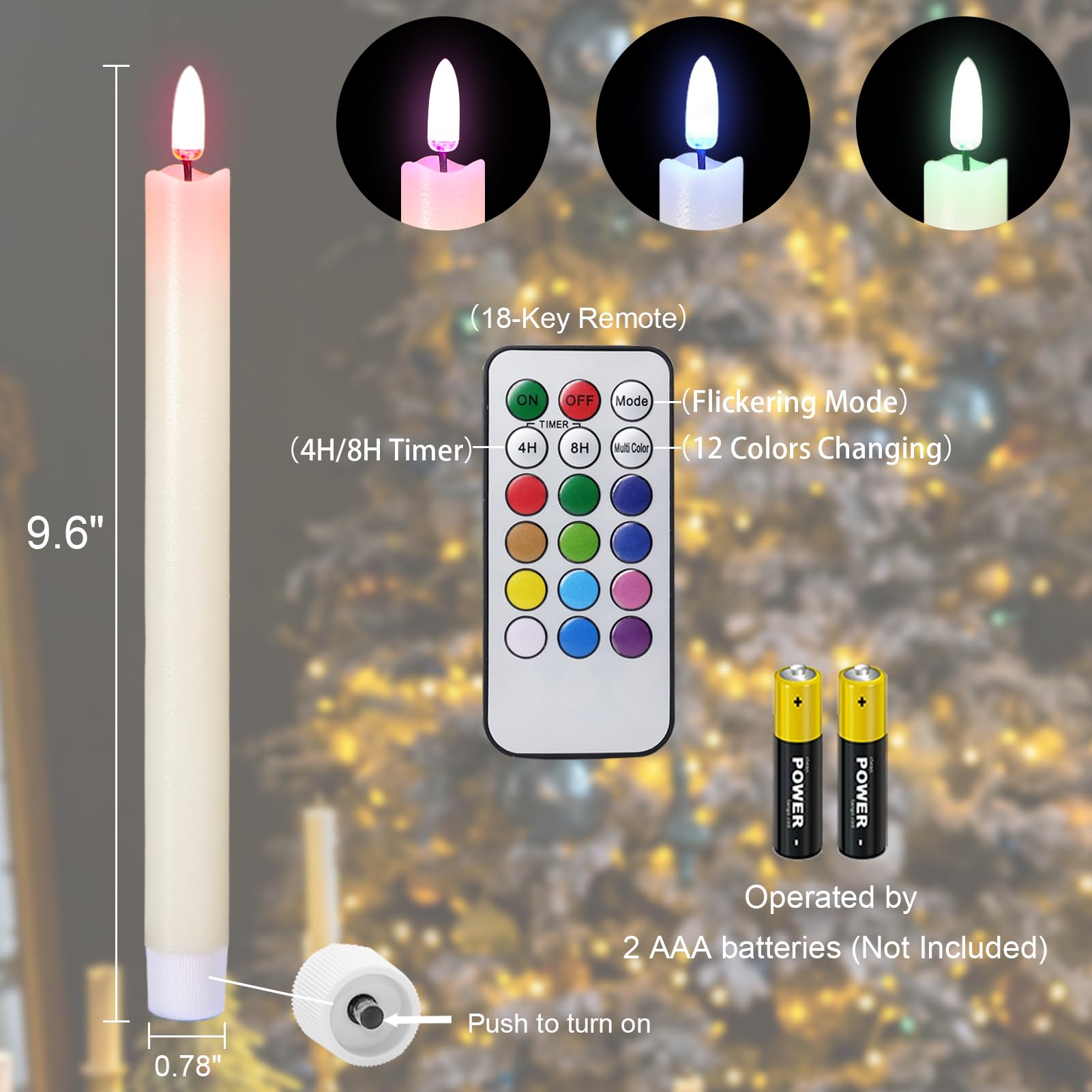 Safe Taper Candles Battery Operated: These are 100% safe flameless battery candles, unlike traditional burning candles. No real fire, dripping wax, and smoking. Each fake taper candle is operated by 2 AAA batteries(not included). Use these safe flickering taper candles, you can enjoy relaxed sleeping, reading, and table time, without the worry of fire hazard. The flameless candles are very friendly for families with pets and children