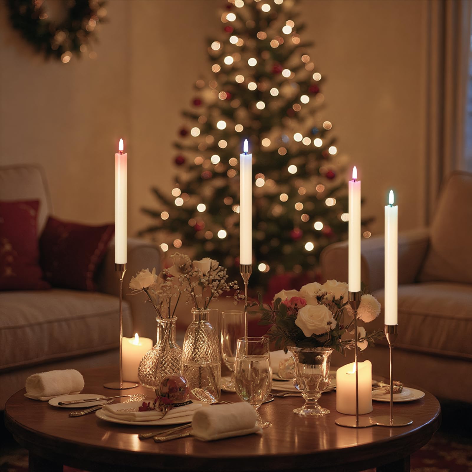 Holiday Home Decorations: The set of 6 flameless taper candles, which are designed for Spring, Wedding, Birthday, Party, Halloween, Christmas, or Holiday gifts. Suitable for dining room, living room, bedroom, table, fireplace, porch, kitchen, bookshelf, and any corner that needs to be decorated. making them ideal for celebrations, parties, or everyday enjoyment