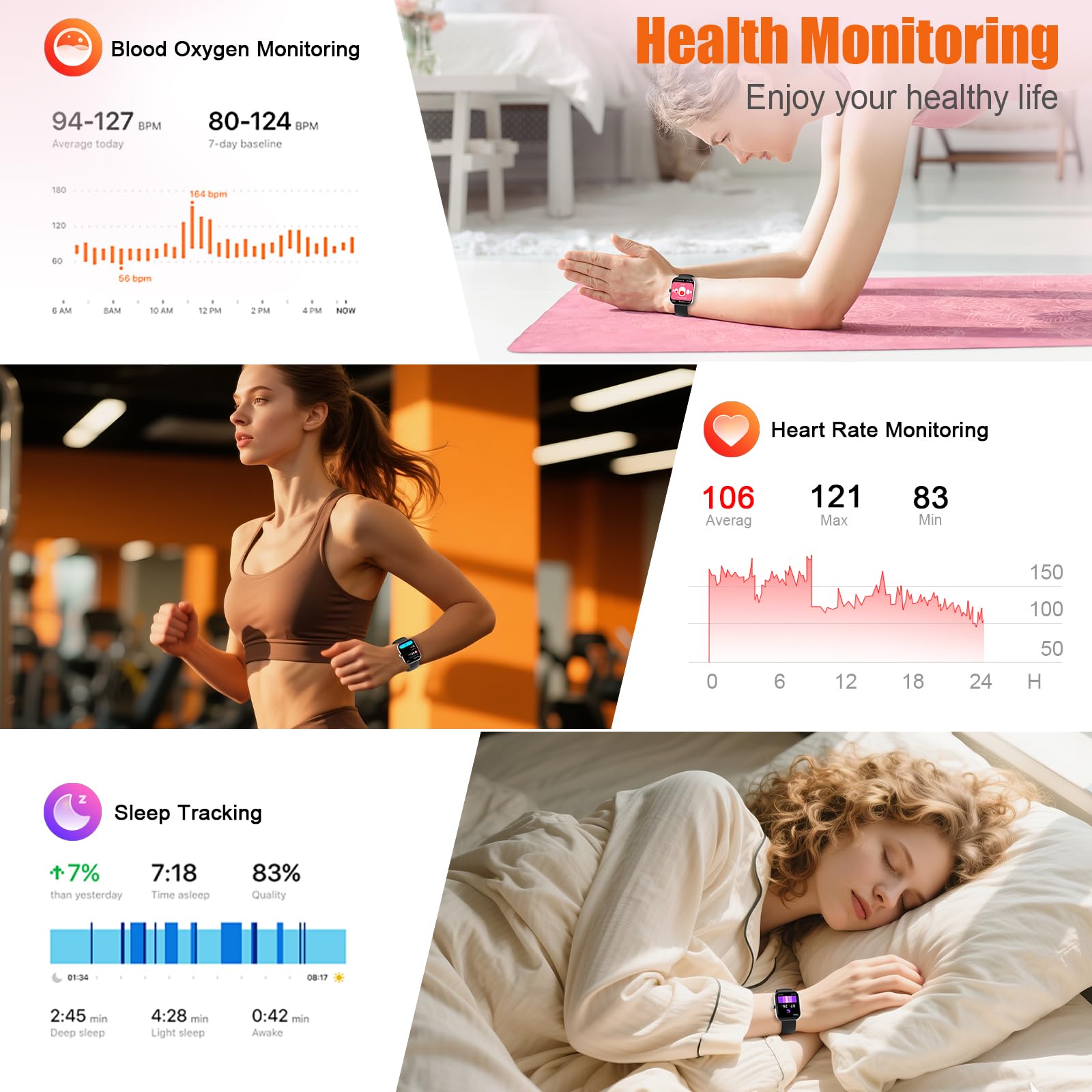 đ ăYour 24/7 Wellness Companion for Smarter ChoicesăFrom busy workdays to restful nights, this smart watche for men is with you. It tracks your heart rate and stress during meetings, analyzes your deep and light sleep, and provides a morning readiness report. It also features female health tracking. All your data is clearly displayed, helping you make smarter daily choices for a healthier, more balanced life.