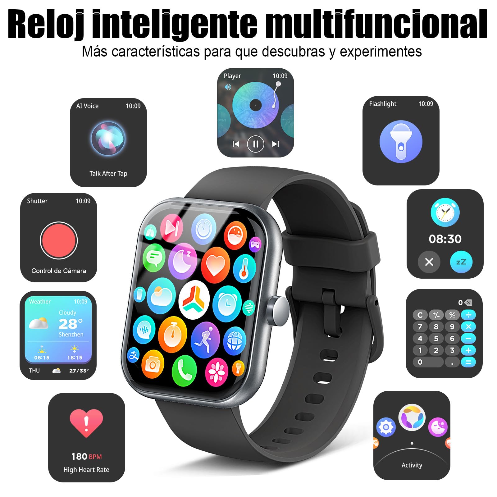 â¨ăYour Wrist-Based Command CenterăMaster your day from your wrist. Control music during your commute, set focus timers at work, use the stopwatch for workouts, and remotely trigger your phone's camera. With built-in weather, flashlight, and "Find My Phone," this fitness tracker packs essential tools that simplify your daily routine and boost efficiency.