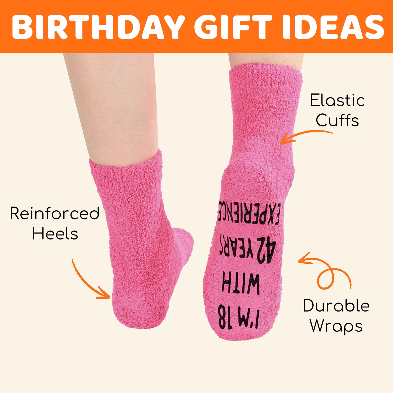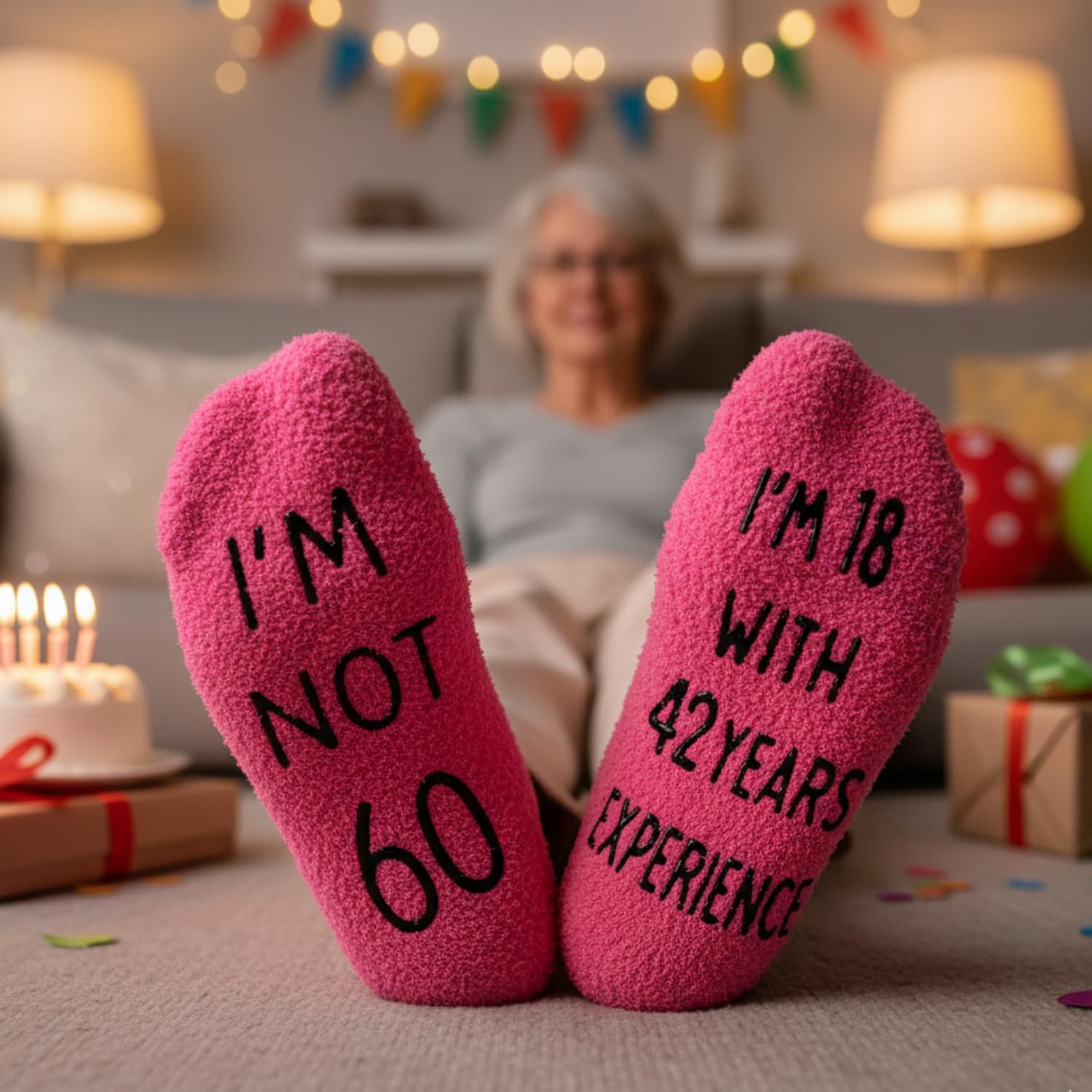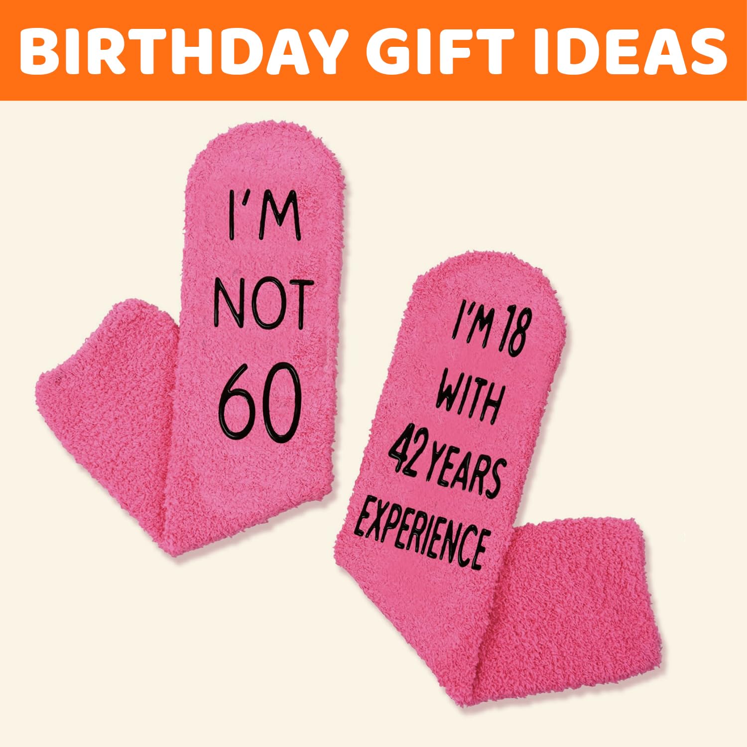 GIFTS for WOMEN IN THEIR 60S: "I'M NOT 60, I'M 18 WITH 42 YEARS EXPERIENCE." Say it with socks - These are suitable for any holiday gifts, like Birthday gifts, White Elephant gifts, Christmas gifts, Mothers Day gifts.