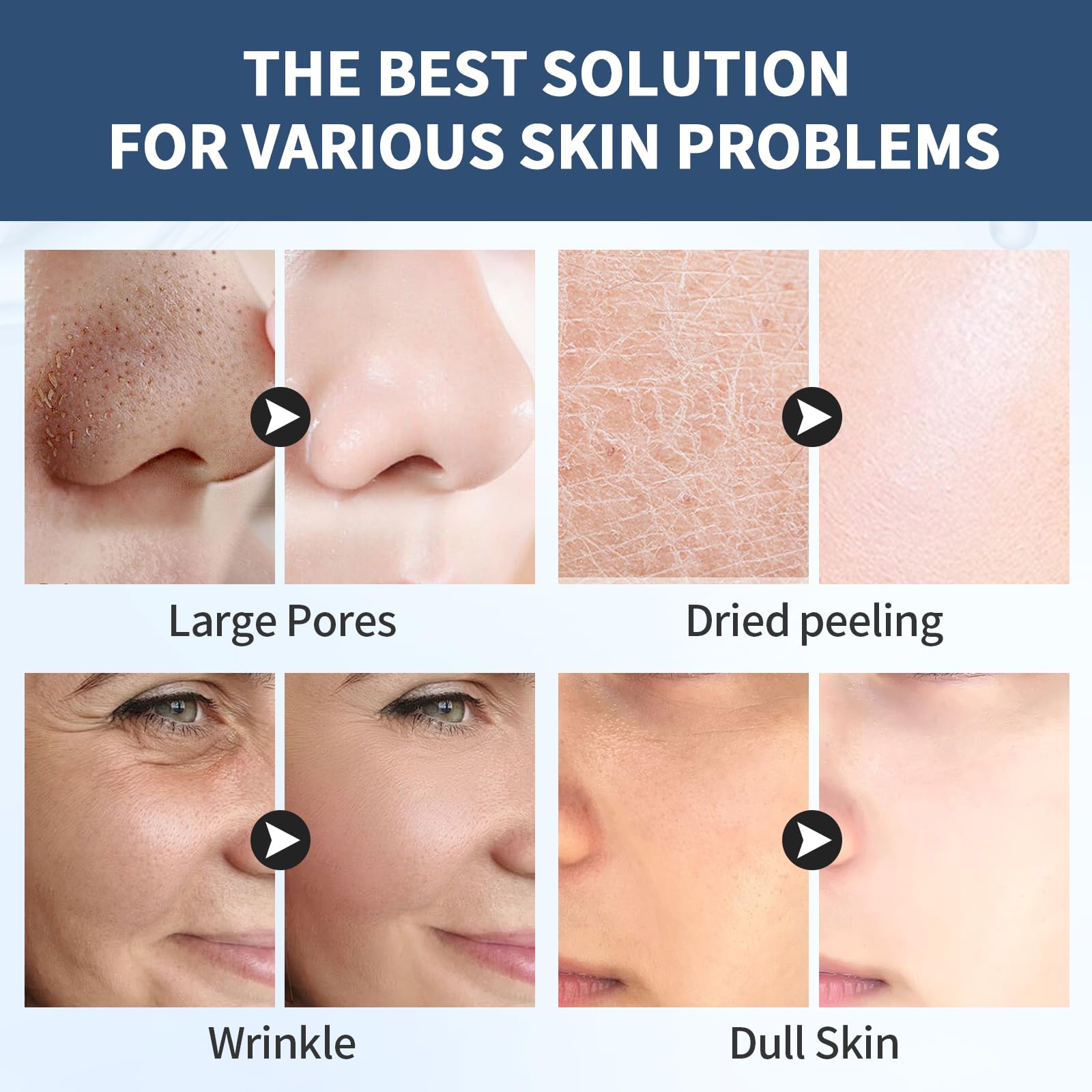 SHRINK PORES&TIGHTEN SKIN:Ultra low molecular weight collagen maximizes skin penetration and absorption. It can improve pore size, immediately increase skin elasticity after application, and significantly eliminate fine lines and wrinkles.