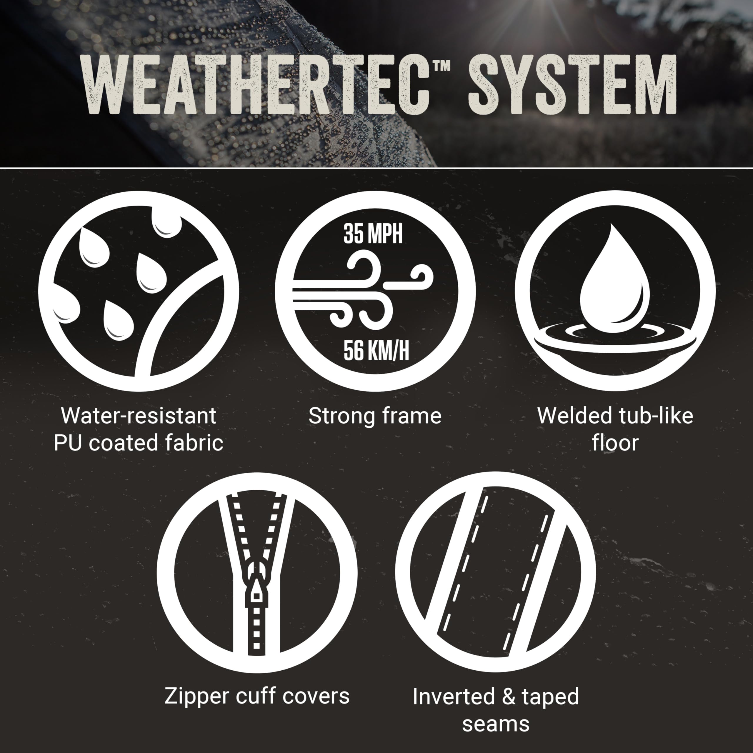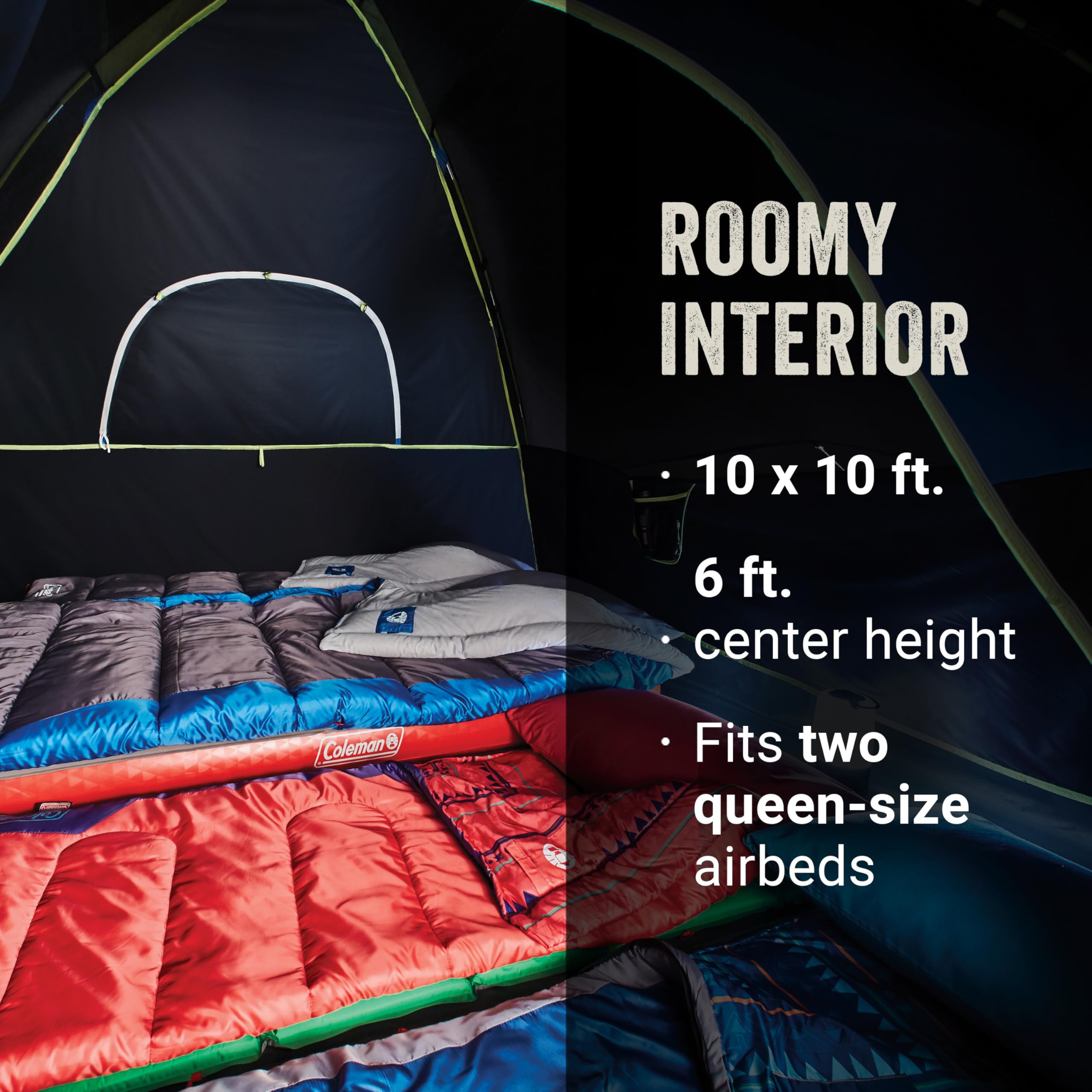 The Coleman 6-Person Sundome Dark Room Dome Camping Tent blocks 90% of sunlight so you can put the kids to bed early or sleep in past sunrise. It also reduces heat inside the tent (vs. a comparable Coleman tent) for more comfortable rest at any time. Downpour in the forecast? Enjoy superior weather protection thanks to an included rainfly, welded corners, and inverted seams to keep water from getting in.