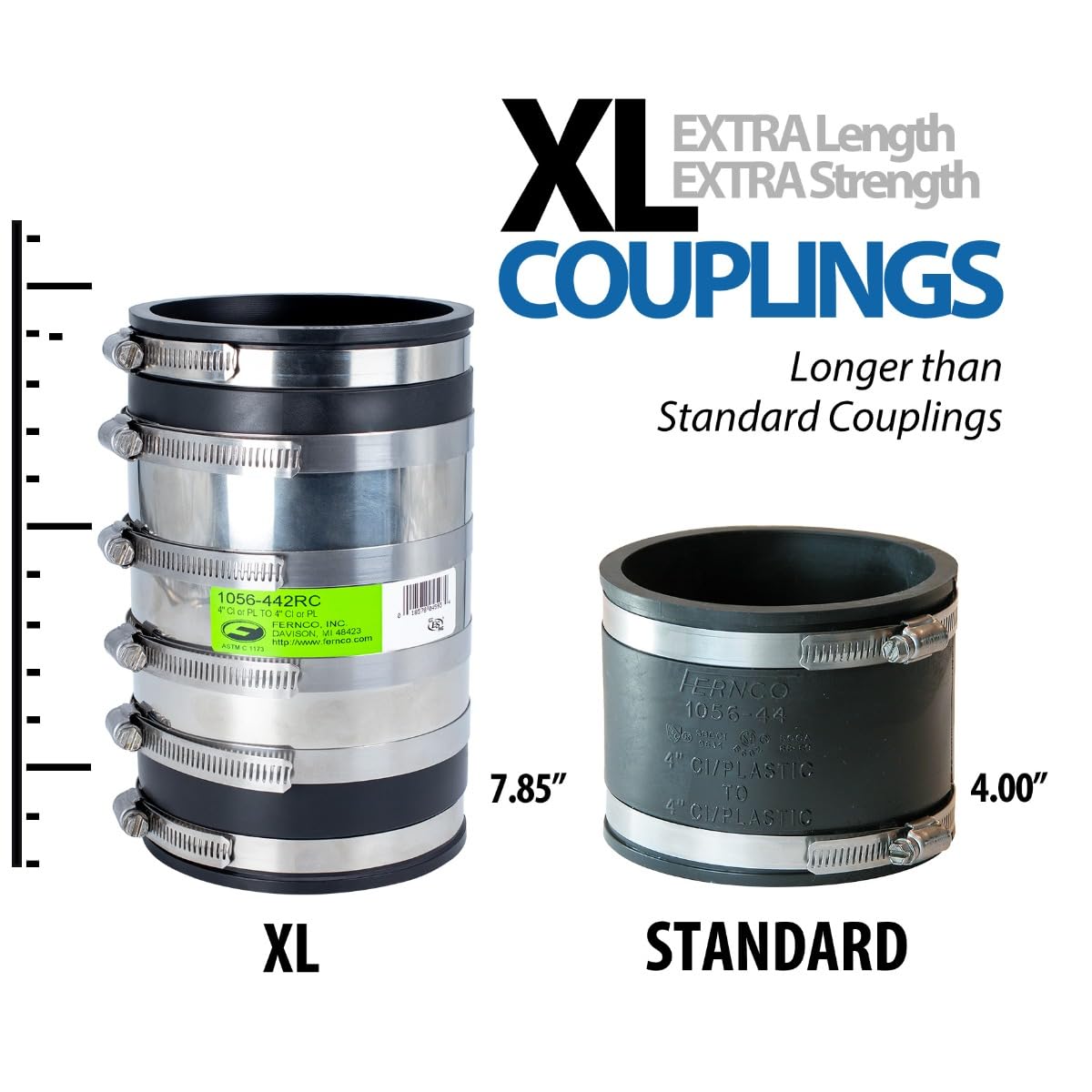 Measure Pipe OD Before Buying: Fits outside diameter 4.10"–4.65"; extra-long 7.85" body helps bridge challenging connections and minor offsets