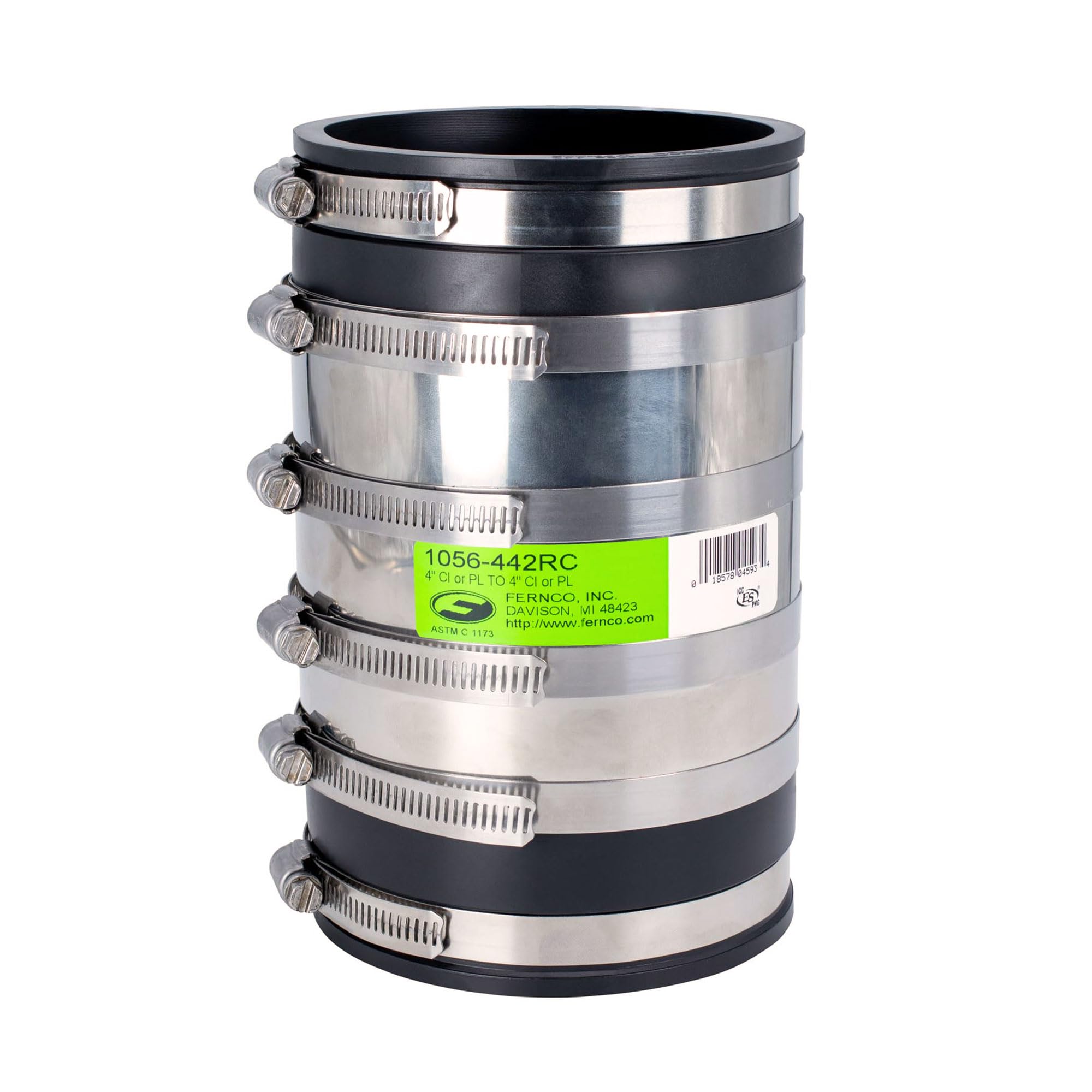 Extra-long, shielded coupling for demanding below-ground DWV connections. Fit check: Fits pipe OD 4.10"–4.65" (measure OD before ordering) Built for underground: Designed to resist heavy earth loads and shear forces Extra length: 7.85" body helps accommodate slight offsets Multi-material: Cast iron, PVC/plastic, lead, and steel drain connections Application: Sewer / drain / waste / vent; max test pressure 4.3 PSI