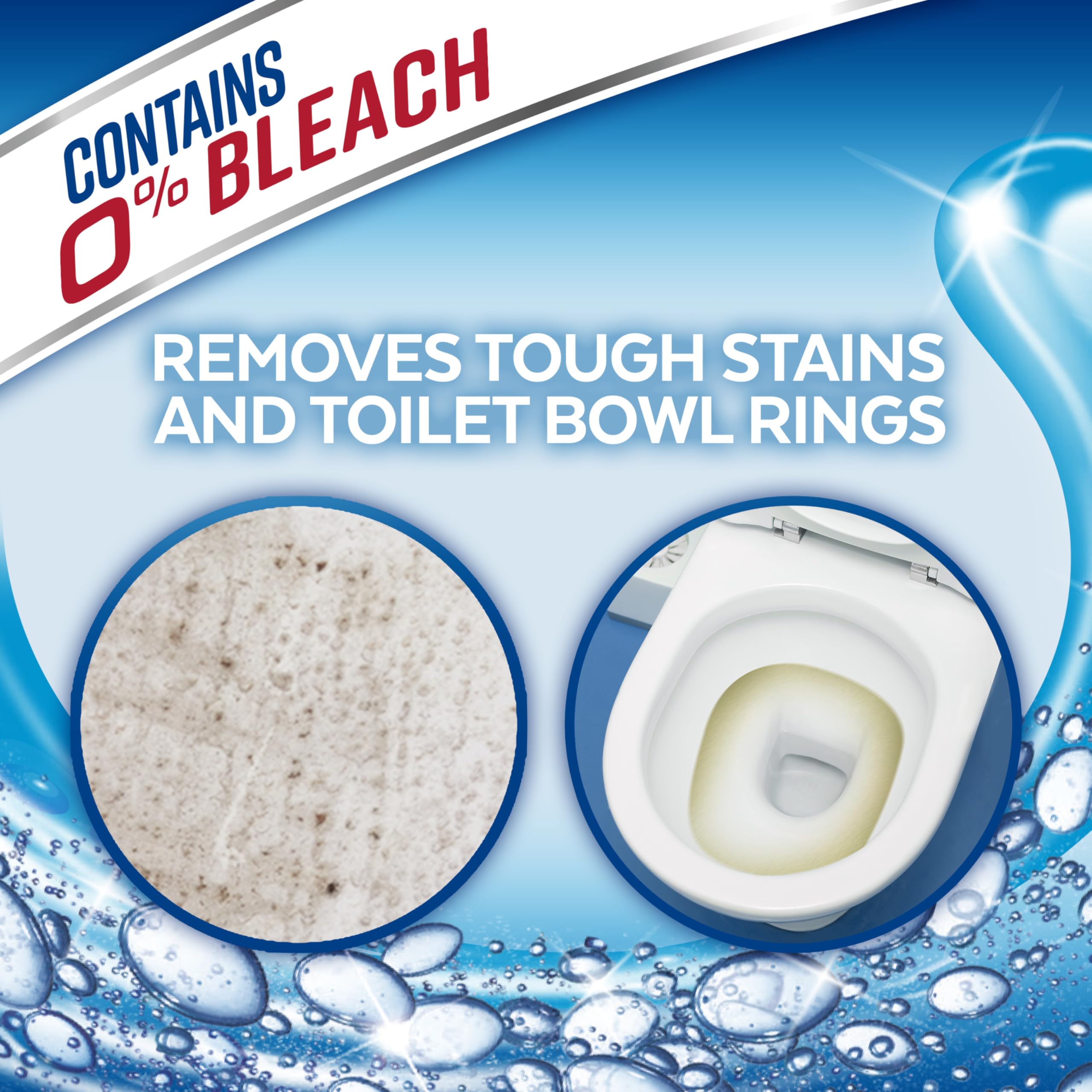 HYDROGEN PEROXIDE BASED FORMULA, 0% BLEACH: Hydrogen Peroxide based formula still powers through the toughest toilet stains, but without the harshness of bleach.