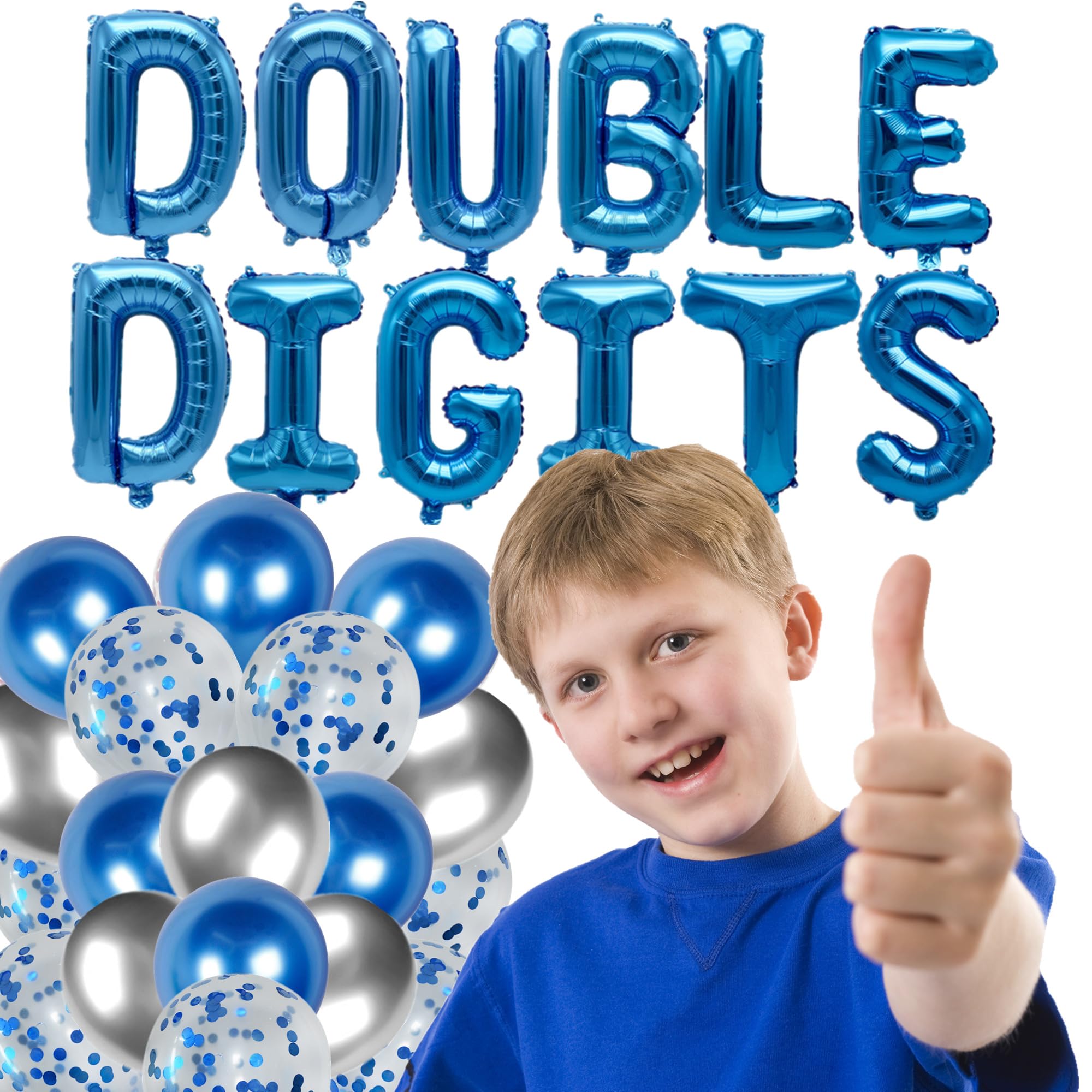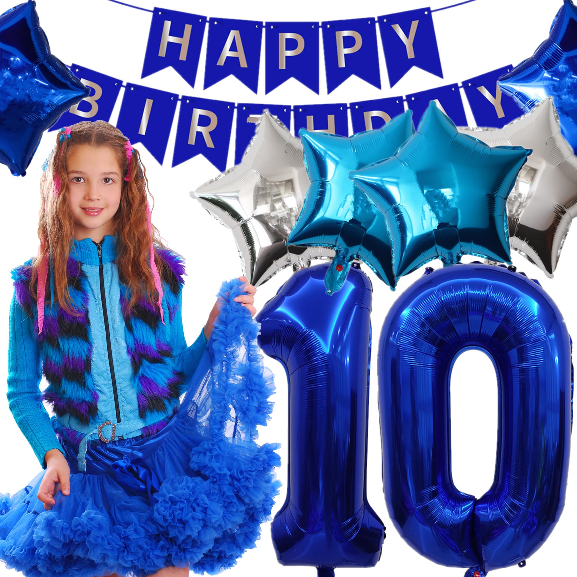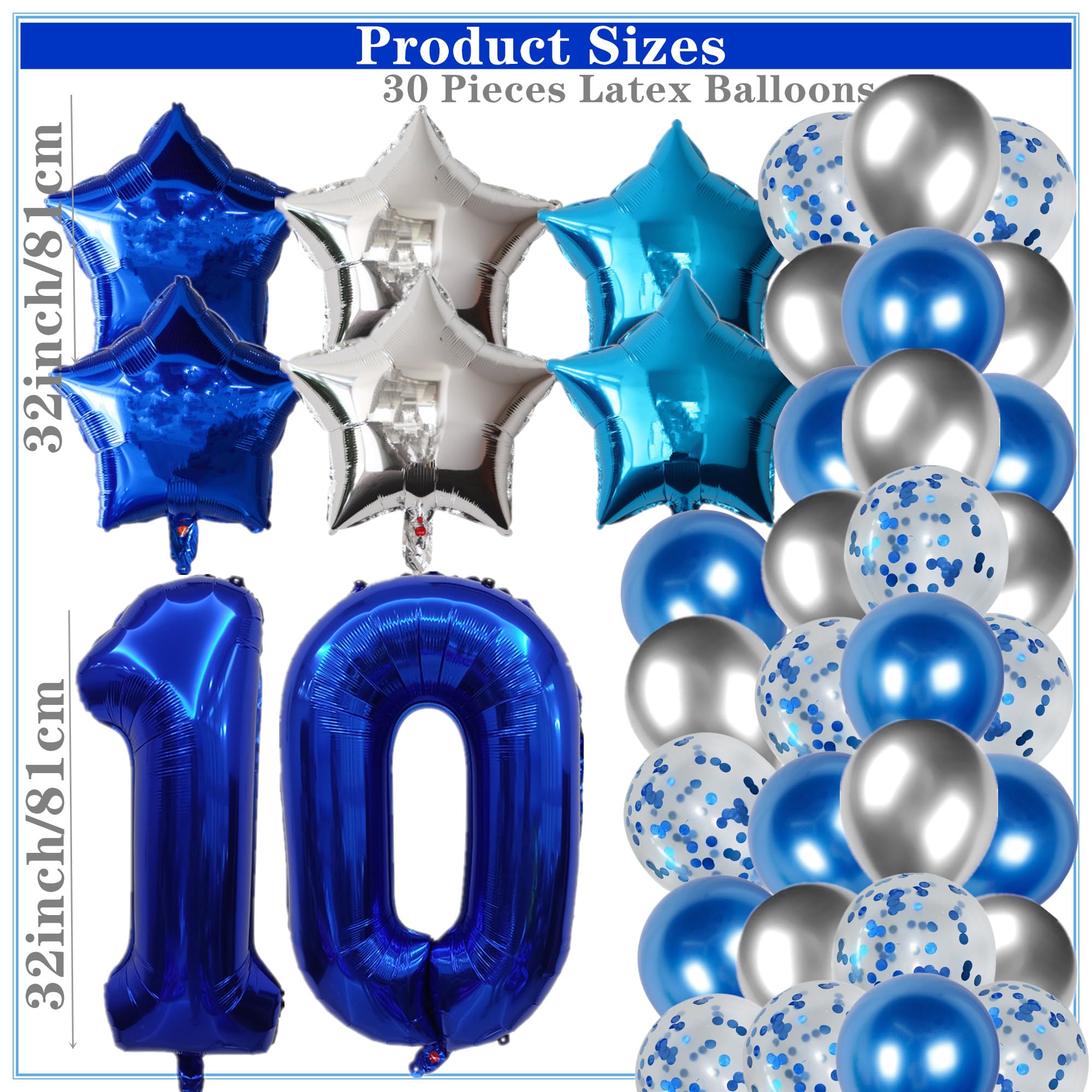 10th Birthday Party Set: This party decoration set includes 12 pieces 16inch letter balloons “Double Digits”, 32 inch blue number 10 balloons, navy blue Happy Birthday banner, 6 pcs 18 inch star balloons, 30 pcs 12 inch and 10 inch latex balloons, 1 pc 10M balloon ribbon, 1 pc 5M balloon chain, making it the ideal gift for yourself, your boys, or your friends.