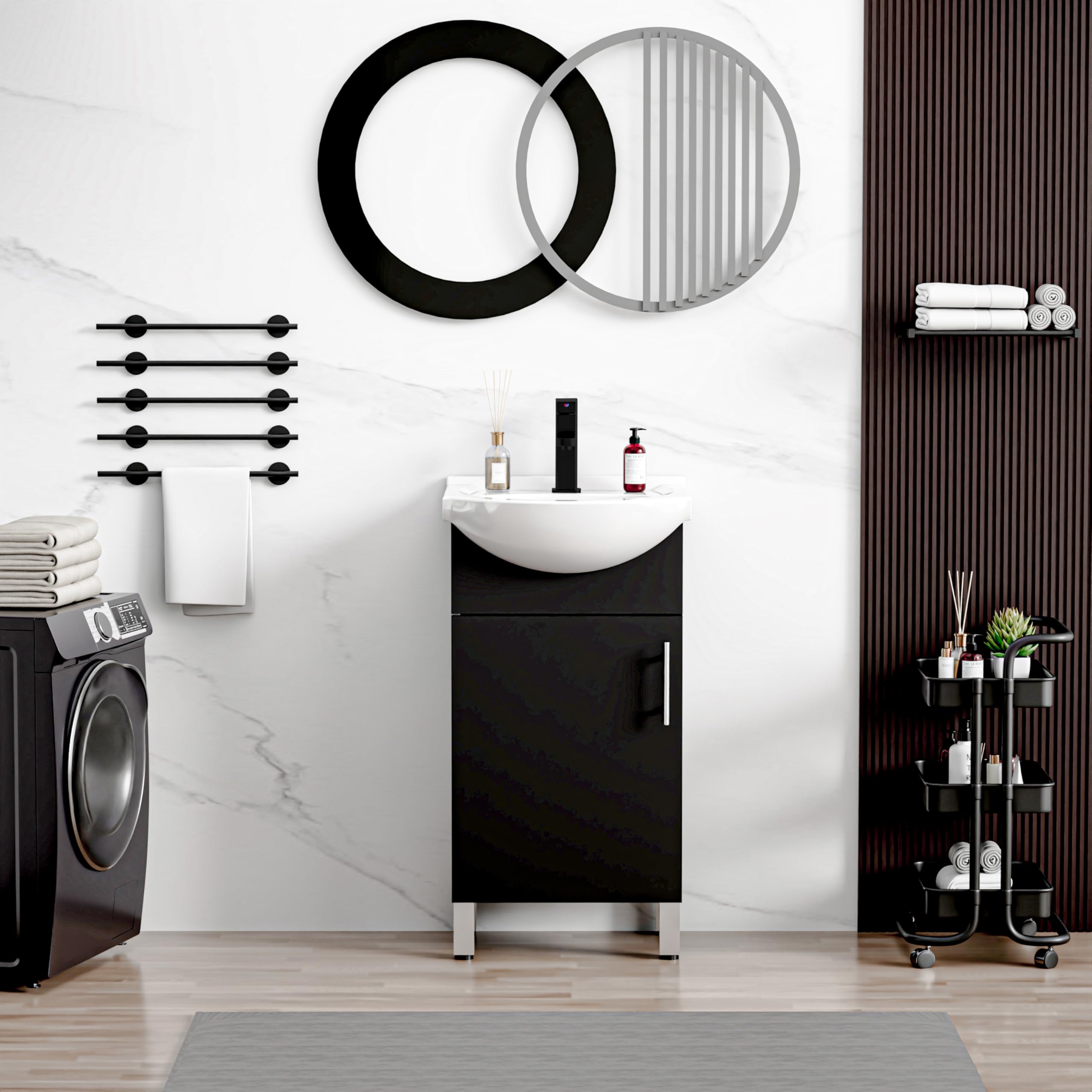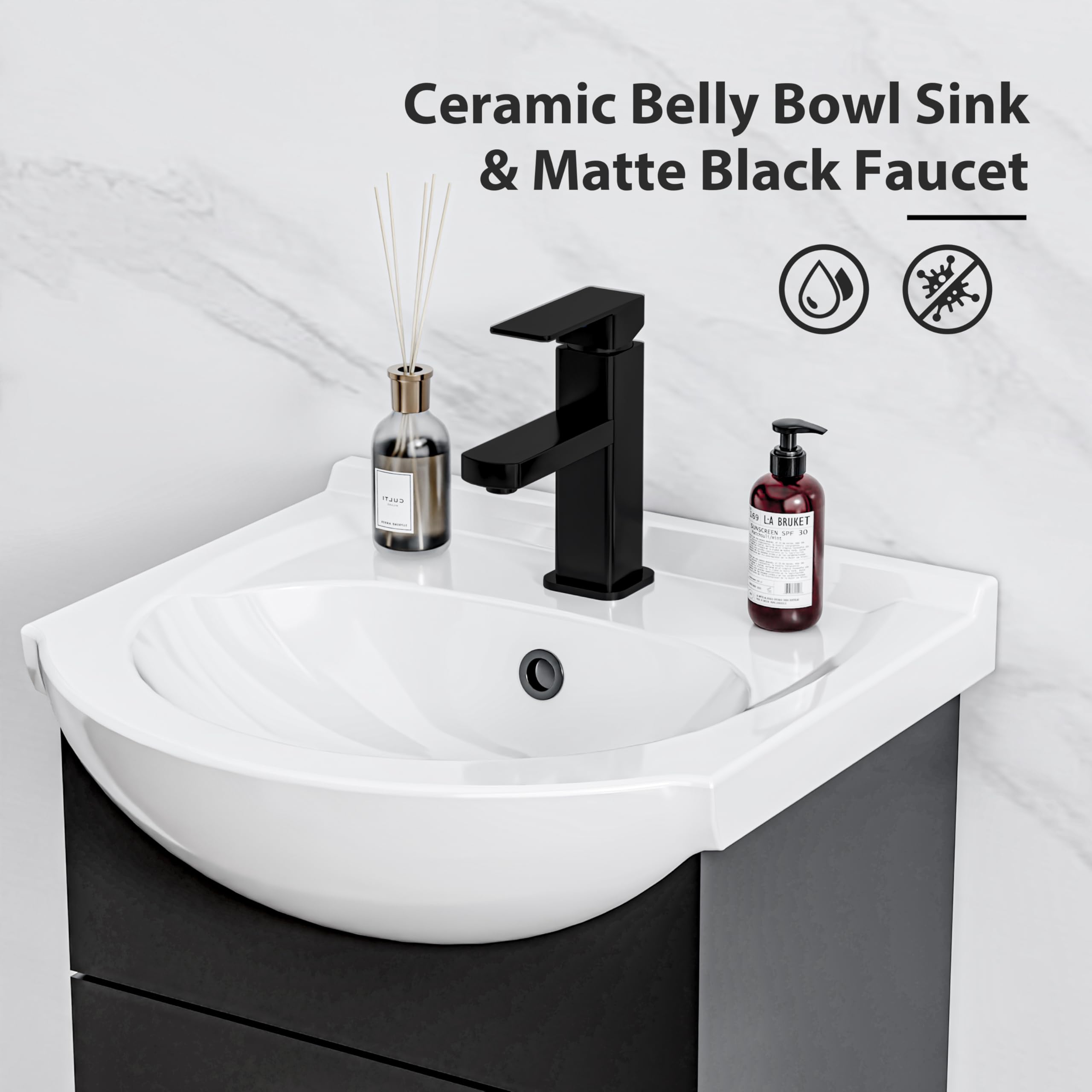 Elegant Ceramic Belly Bowl Sink: Enhance the style of your laundry or bathroom with this ceramic sink designed in a sleek belly bowl shape. You can easily maintain its cleanliness by wiping the surface with a damp cloth. The sink also comes with a matte black faucet for added sophistication