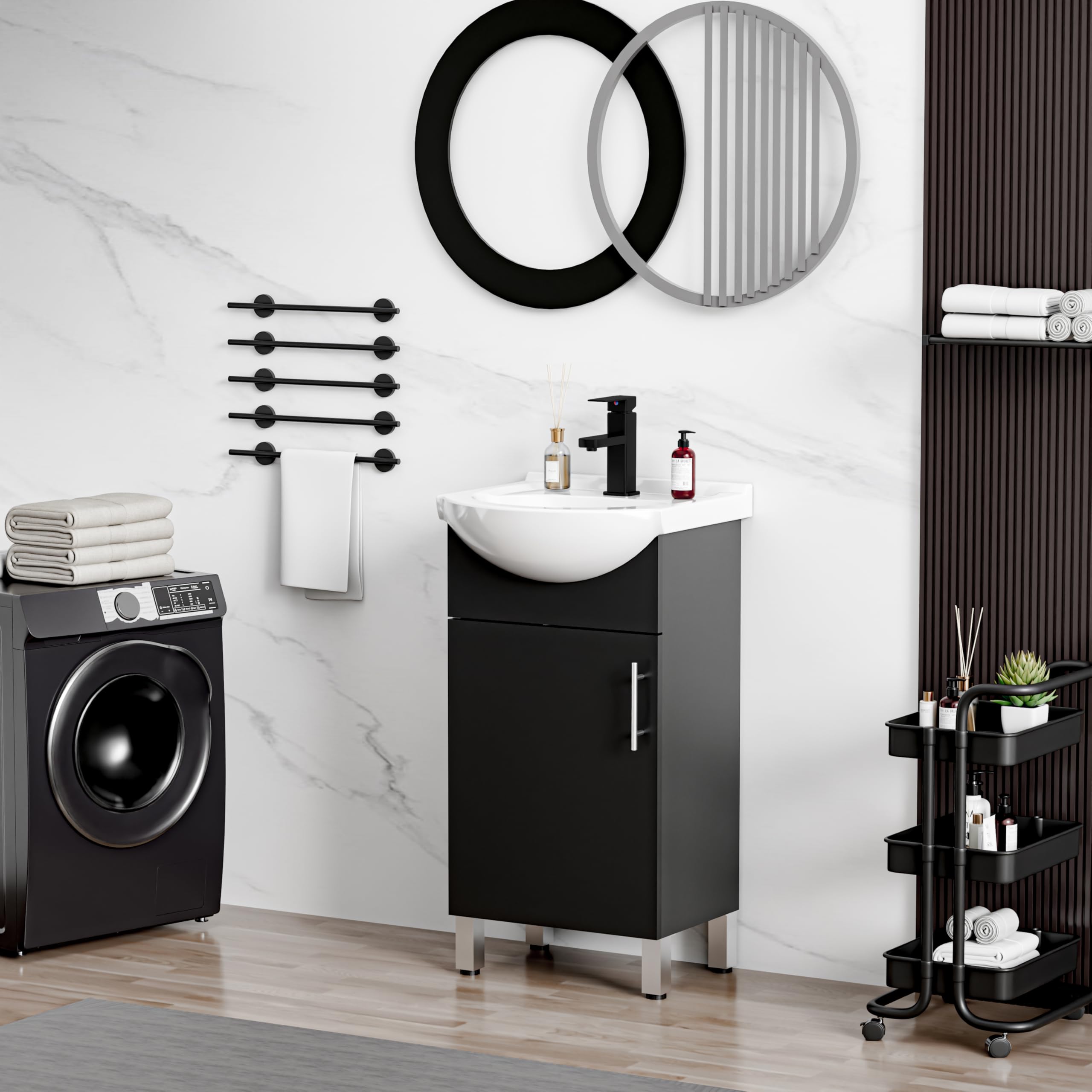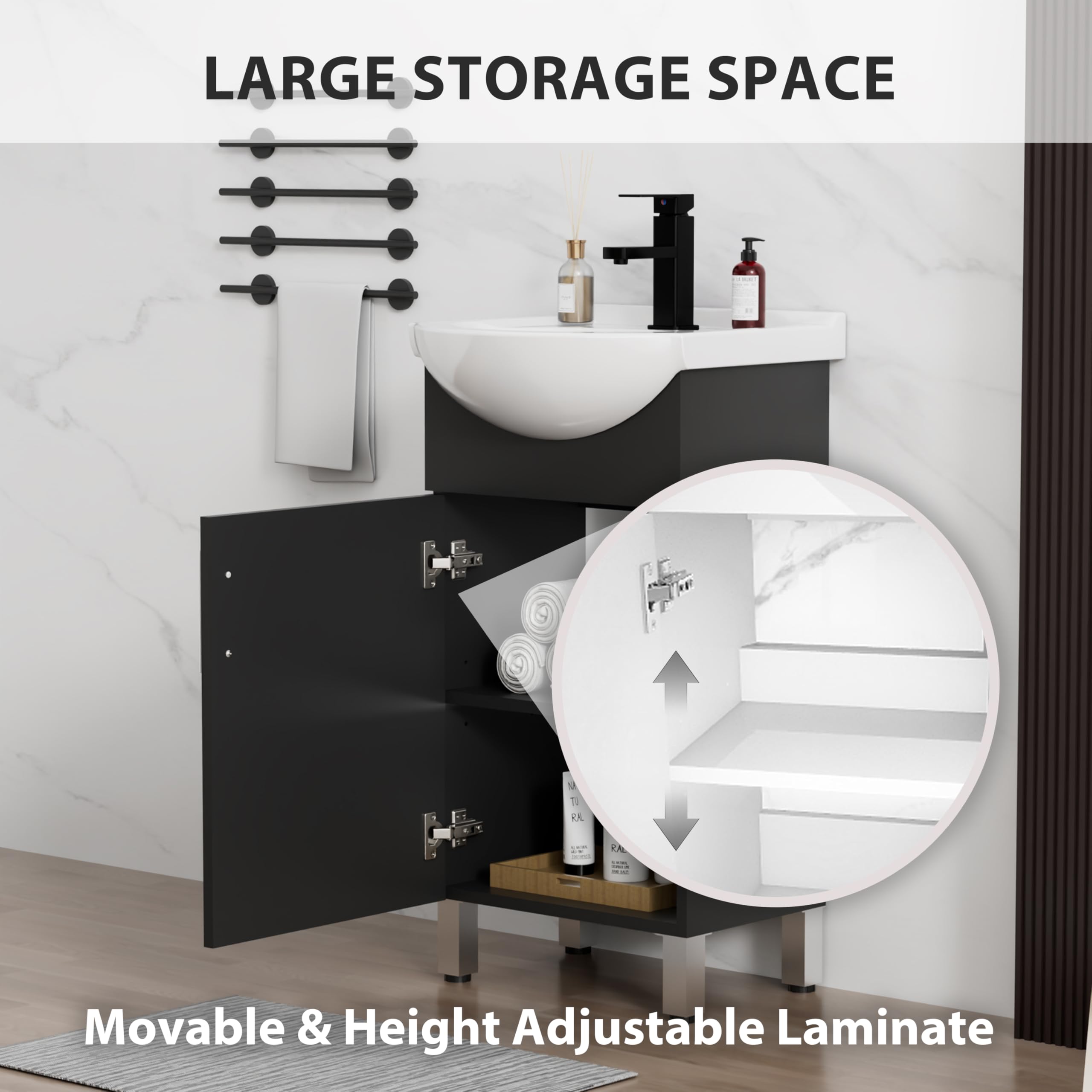 Spacious Storage Solution: This ceramic utility sink cabinet features 1 open door and 2 adjustable shelves, offering ample storage space for all your laundry and bathroom essentials